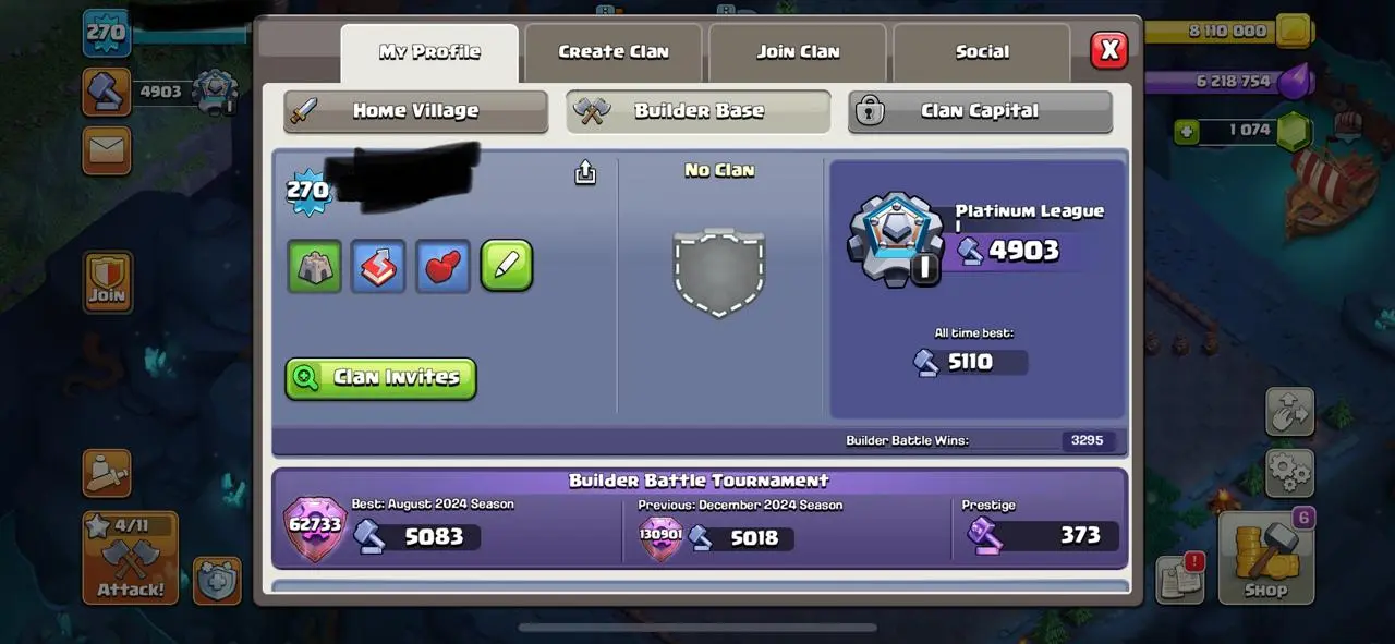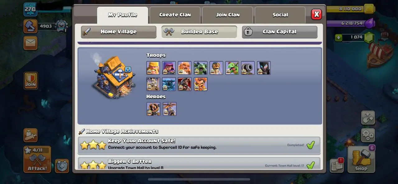 🔥 NEAR MAXED TH 17 + 💯 % MAXED BH 10 😍 5.5k+ ATB 🥹 MAXED FIREBALL , BOOTS & MIRROR LEVEL 26 😴 1.4K+ RAID MEDALS 🎖️ 4 SKINS INCLUDING DRAGON WARDEN 🤫 HIGH XP ⸱ 270 🥹 V204 ✨