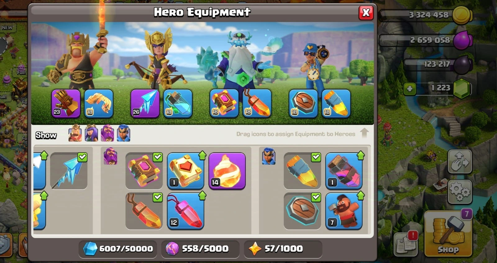 🔥 RARE ⸱ 588 GLOBAL RANK ☠️ FULL MAX TH 16 😈 only some walls left ⚡️ 13.2k+ LEGEND TROPHIES 🏆 41+ SKINS 🥵 4+ LEGENDARY SKINS 🔥 9th & 10th CLASH IVERSARY SCENERY 🥹 1351 CWL MEDALS 🎖️ 3127 RAID MEDALS 🥇 FREE NAME CHANGE 💎 OP STACKED ACCOUNT ☠️ V123 💫