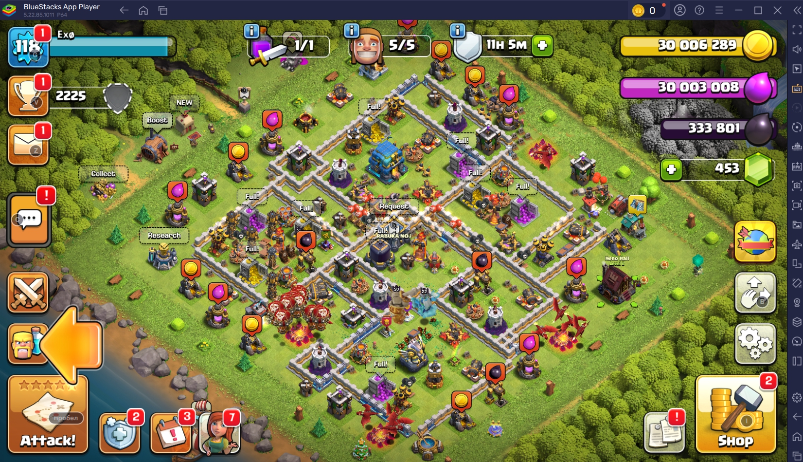 TH 12 💯 118 LEVEL ❤️ 53-55-30-22-0 HEROES 🐼 FROZEN ARROW LVL 11 ❄️ FIREBALL LVL 4 🔥 GIANT GAUNTLET LVL 12 🔥 RARE SKINS ✅ 2225 TROPHIES 🏆 #QVGYQ2RQR TAG ACCOUNTS 💯