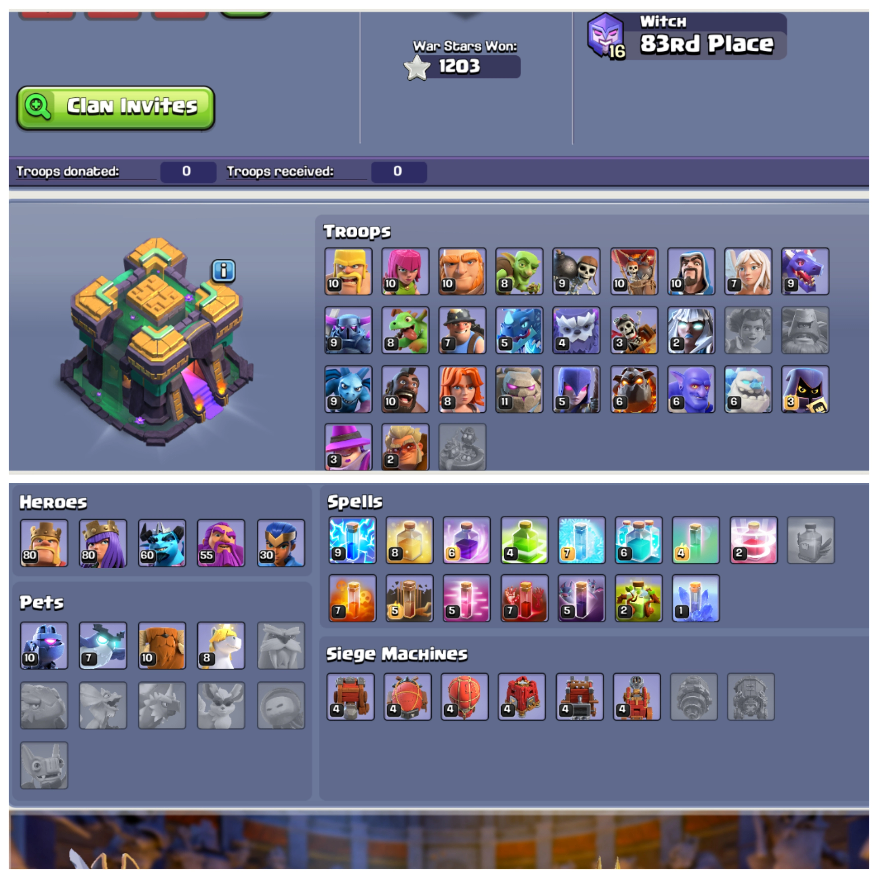 💥 TH 14 98% Maxed Out 🧬 11 Epic Equipments ⚒️ Heroes: BK80 AQ80 MP60 GW55 RC30 ✨ Name Changeable 🎭 Good Skins 🏰 Max Base ⚡ Instant Delivery