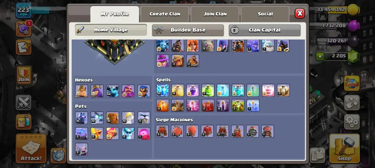 TH 17 ALL MOST MAX🔥DARK DAYS & MILITARY SCENERY🔥HEROES MAX 100-100-64-75-50 FULL EPIC EQUIPMENT🔥MAGIC ITEMS READY🔥READY CHANGE NAME🔥FULL ACCESS ACCOUNT🔥