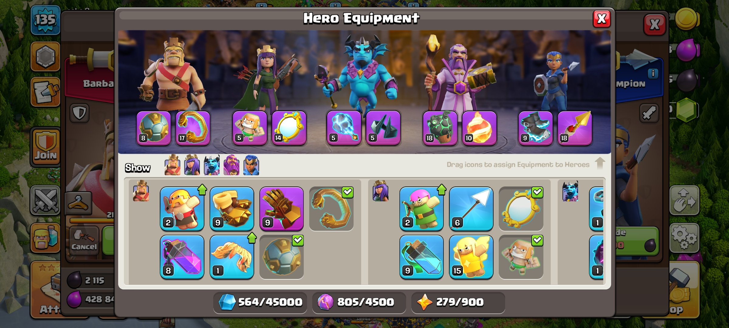 TH 17 RARE~HERO EQUIPMENT EPIC FULL~HERO BIG AND TALL- XP 135 /BK 51-/AQ 76/PM 40 /GW 20-/RJ 21/LOG SUPERCELL ID-/Andoid and ios|SCREENSHOTS ON DESCRIPTION