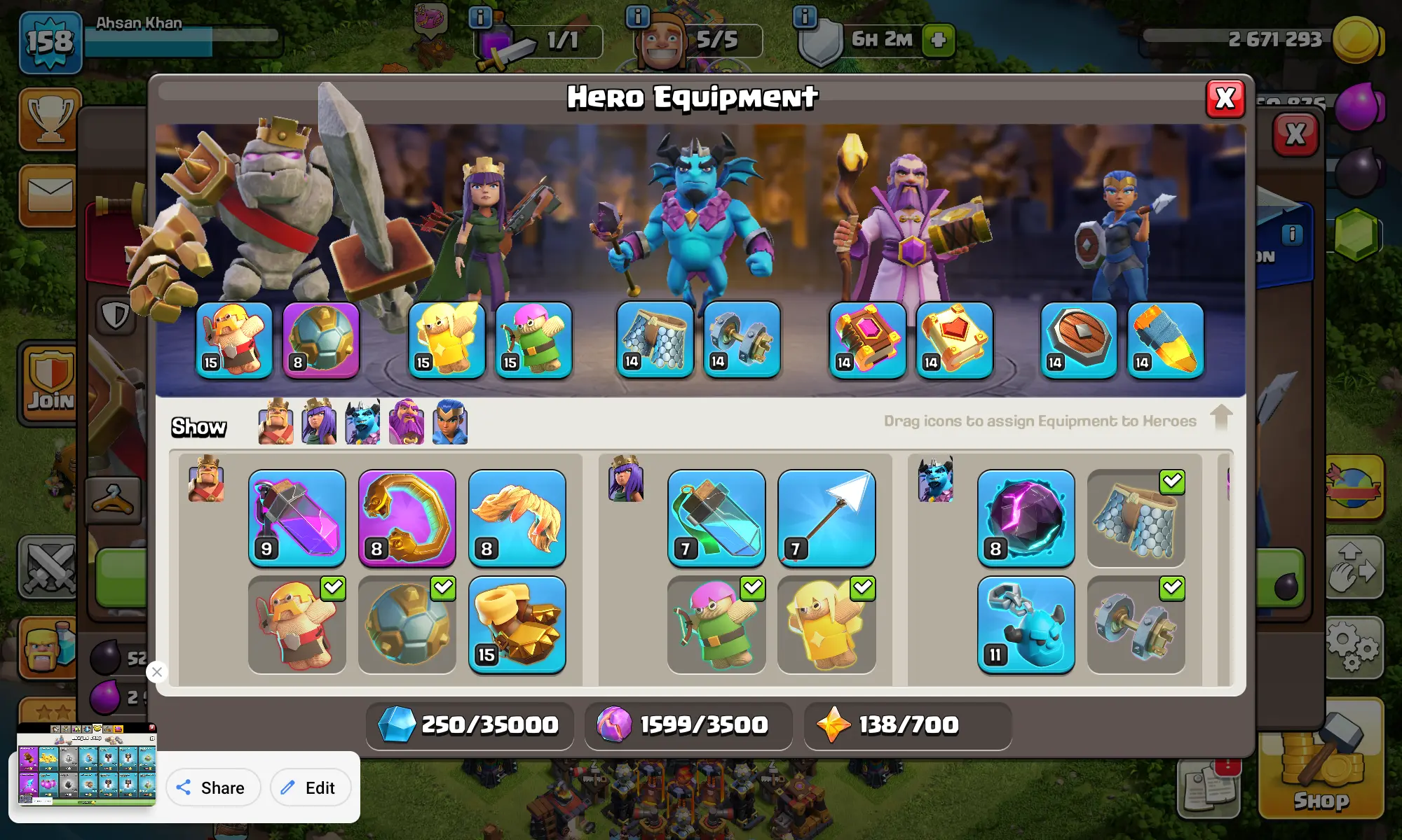 🔥🏆 TH14 WARRIOR KING 🏰⚔️ | 🦾 BK56 💪 / 🏹 AQ56 🎯 / 👹 MP50 😈 / 🌀 GW35 🌪️ / 🛡️ RC16 🛡️ | ⚒️ BH7 🏯 🛠️ BM15 🔨 | 🎖️ 100 CWL 🏆 / 💰 1400 RAID 💥 | ⭐ 290 WAR STARS 🌟 | 💎 740 GEMS 💎 + 🪄 MAGIC ITEMS ✨ + 💎 EPIC EQUIPMENT 💎 + 🔄 NAME CHANGE 🔥🚀