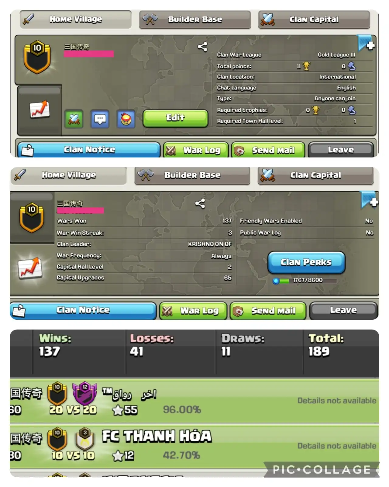 Level 26 clan || clan capital 5 || crystal 3 || Chinese name