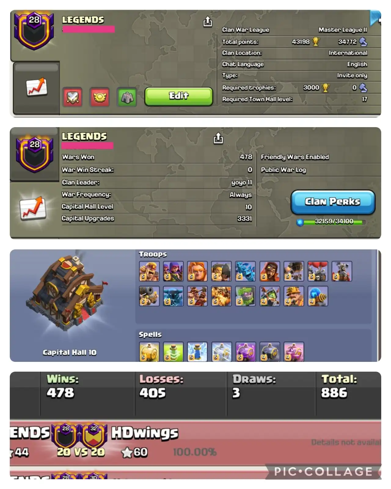đ„ [MASTER 2 + CC MAX ] đNAME : LEGENDS đ„¶ LEVEL : 28.9 âïž WARLOG W-L-D : 478-405-3