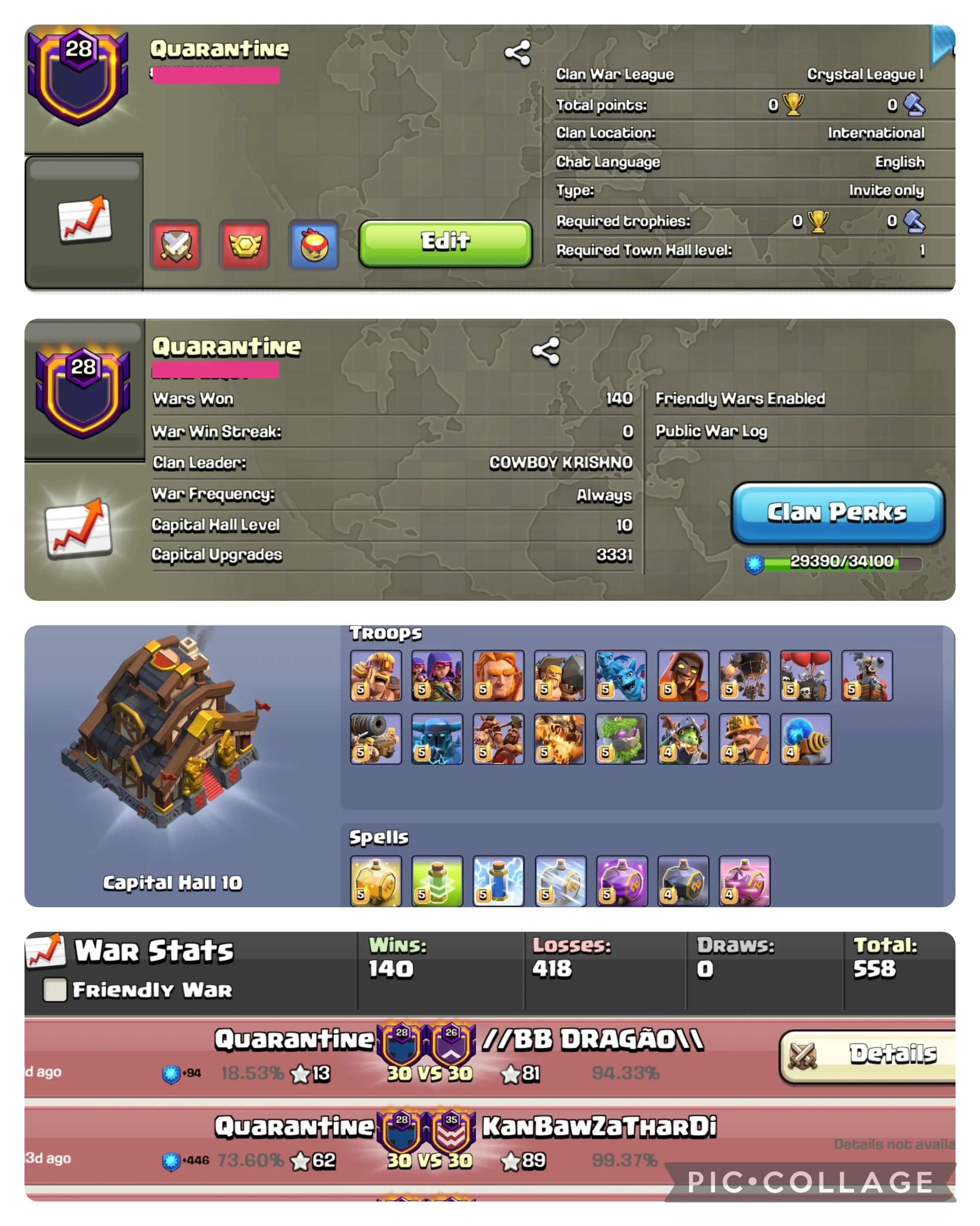 CRYSTAL 3 + CC 7 | LEVEL 12 | KINGS OF CLAN | WARLOG W-L-D : 141-54-10