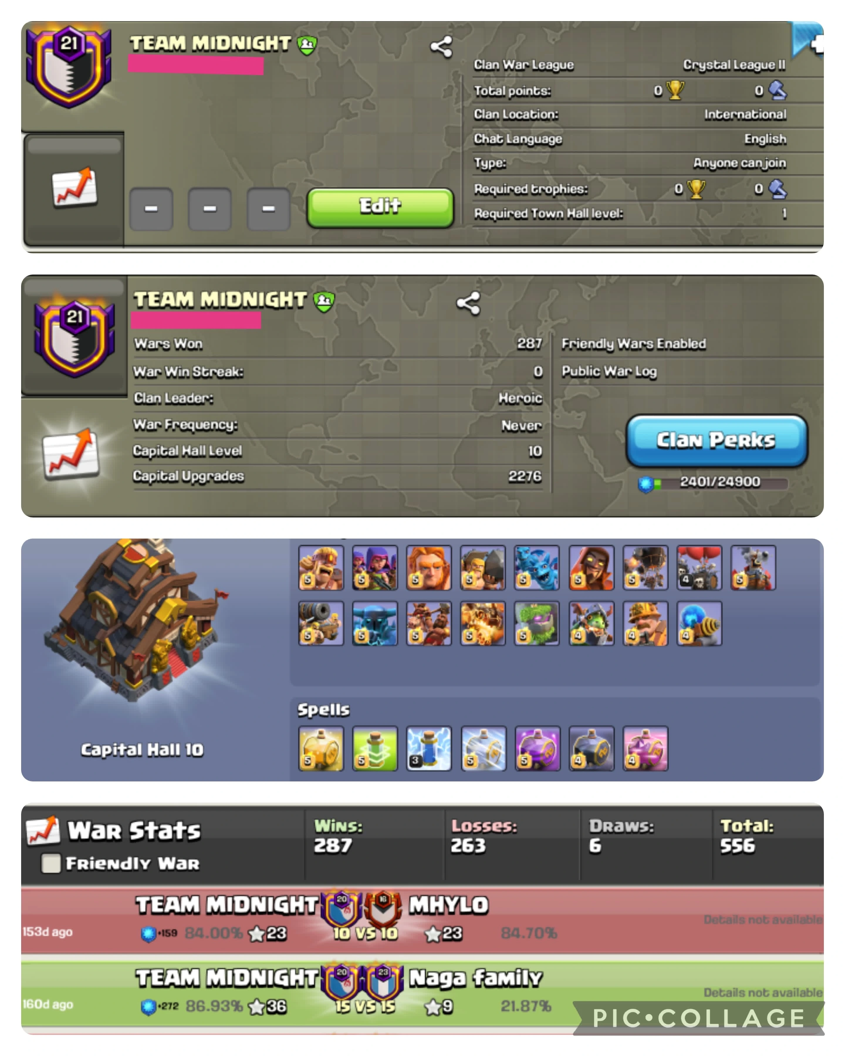 đ[CRYSTAL 2 + CC 10 ] đșTEAM MIDNIGHT đ 21 LEVEL đ WARLOG W-L-D : 287-263-6 âĄïž