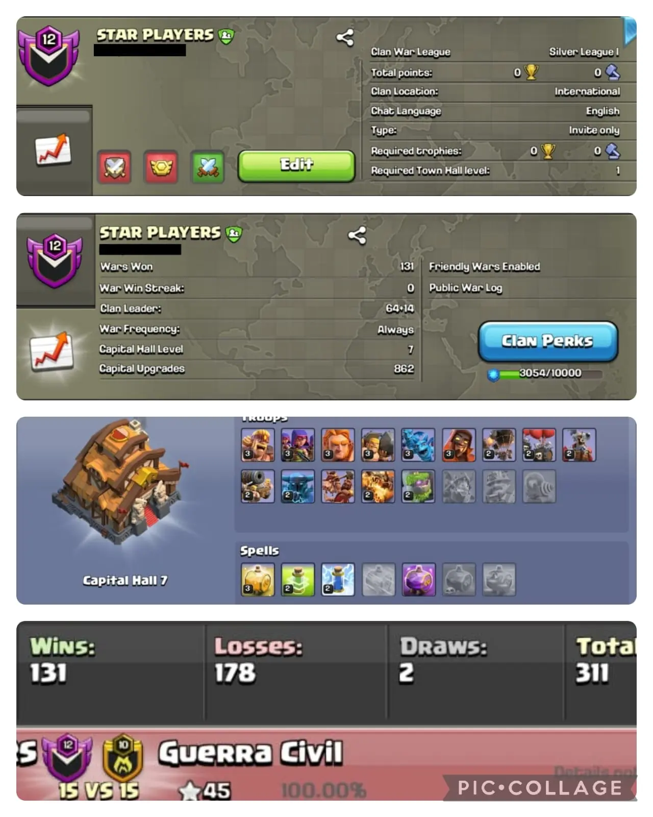 🔥NAME- STAR PLAYERS | LVL 12🥵| 💥WARLOG W/L/D:131/178/2 | CWL League: SILVER 1🏆| CC: 7 !!💥