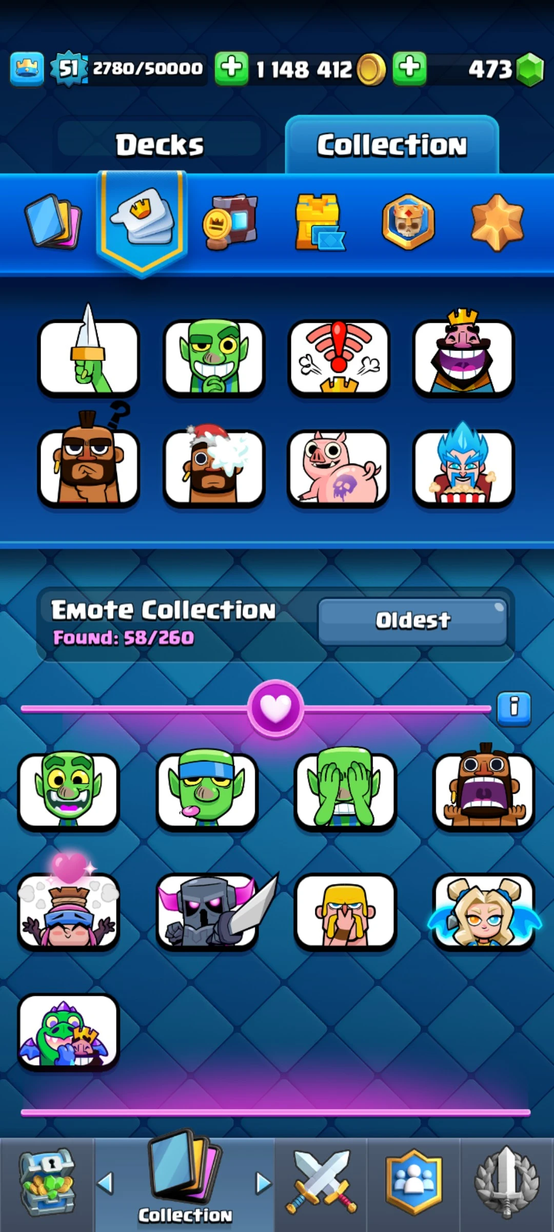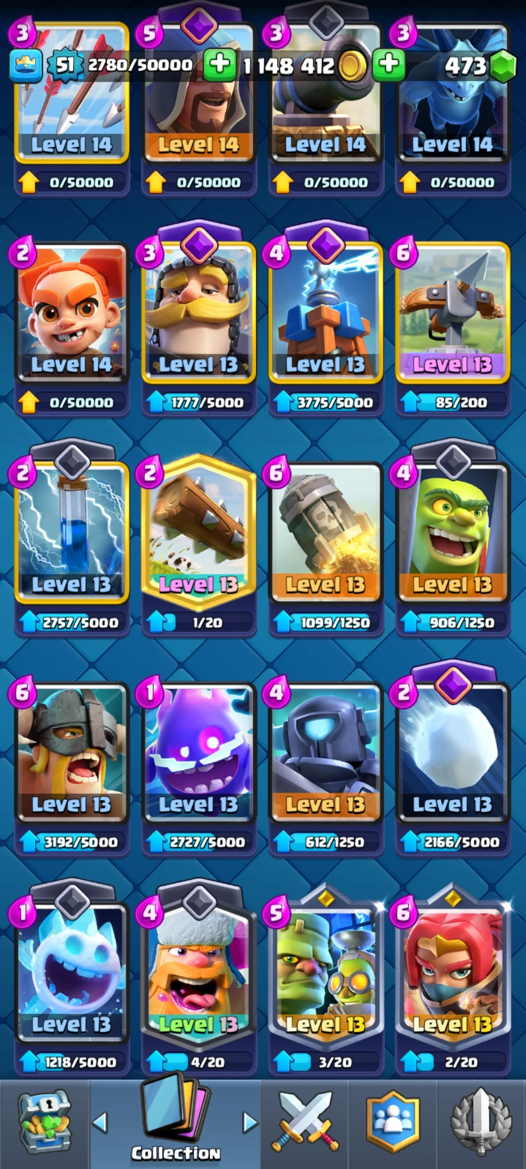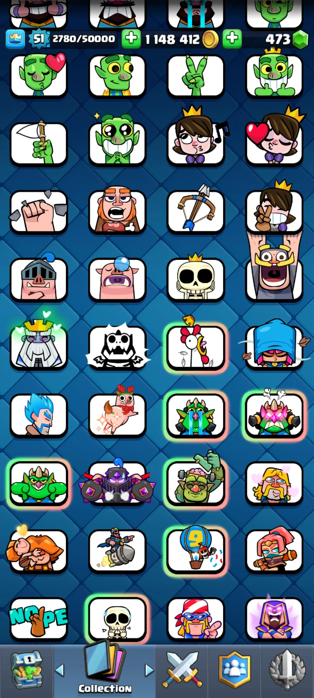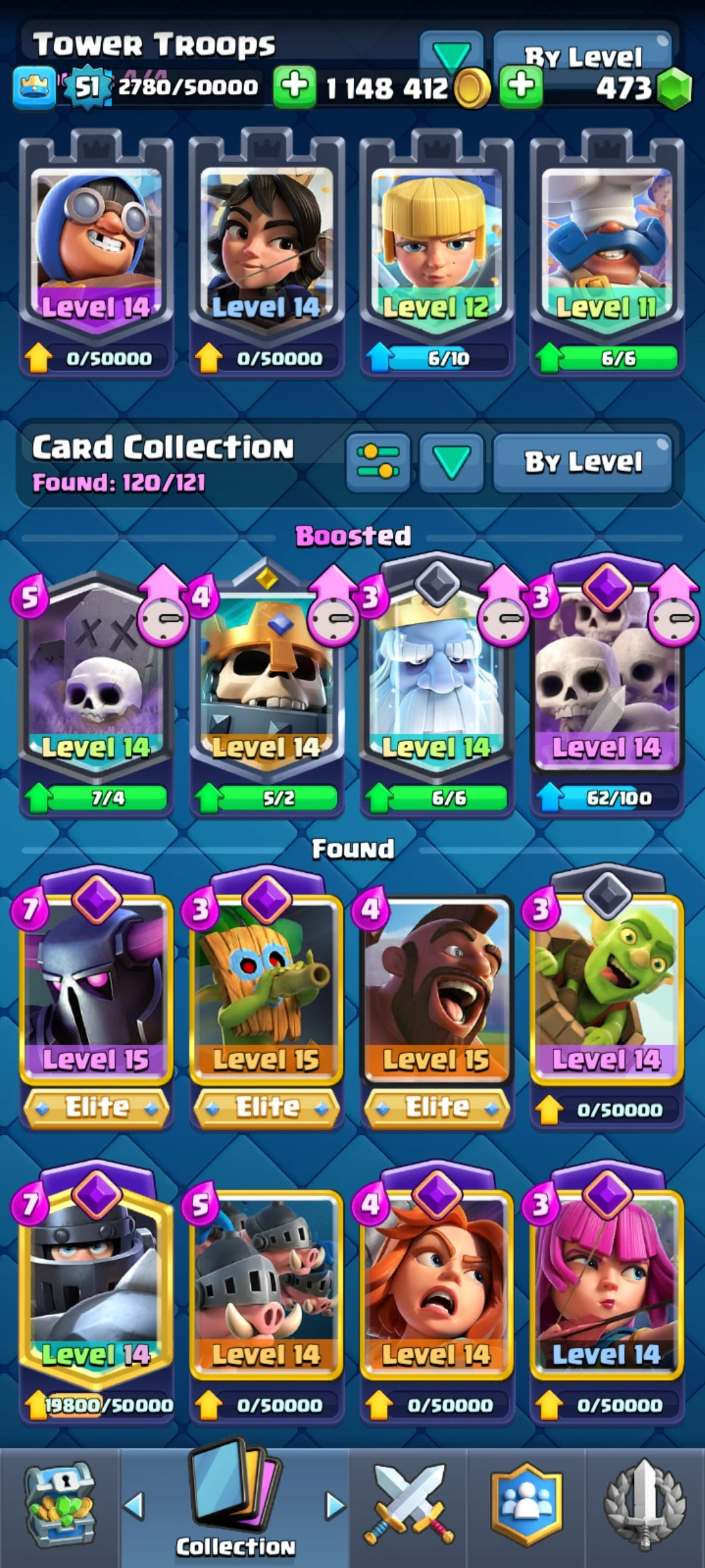 10000 Trophies đ , 17 MAX CARDS đ, 14 Evolution đ„ | 3 Eliteđ„ | KT: 14 đ | Level: 51 | 120 Cards đ | 473 Gems đ | 1148412 Gold đȘ | 58 Emotes đș | NC: Free đ | ⥠Instant Delivery đ | See Pics for Full Details! đ