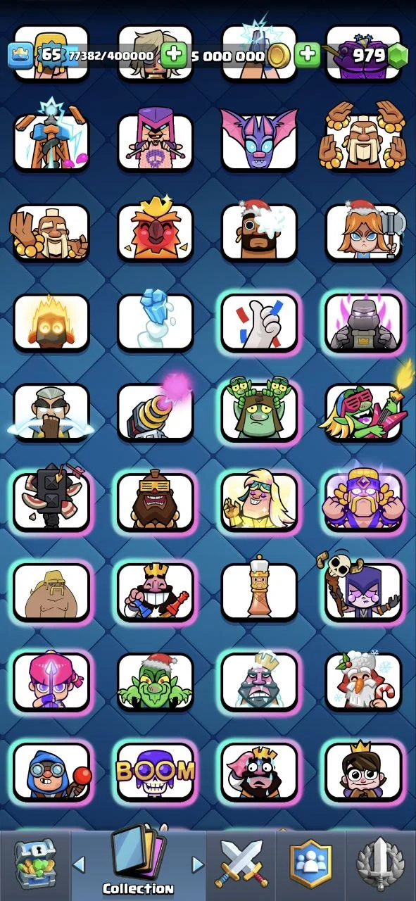🏆 15000 TROPHY ✨ EMPEROR KING ✨ KT 15 🔱 LVL 65 ✨ MAX CARDS [93] ✨ ELITE [51] ✨ EVO [19] ✨ LVL 14 [116] ✨ EMOTES [131] ✨ GOLD [5M] ✨ ELITE TOKENS [60K] ✨ CARDS [120] ✨ 10000% SAFE