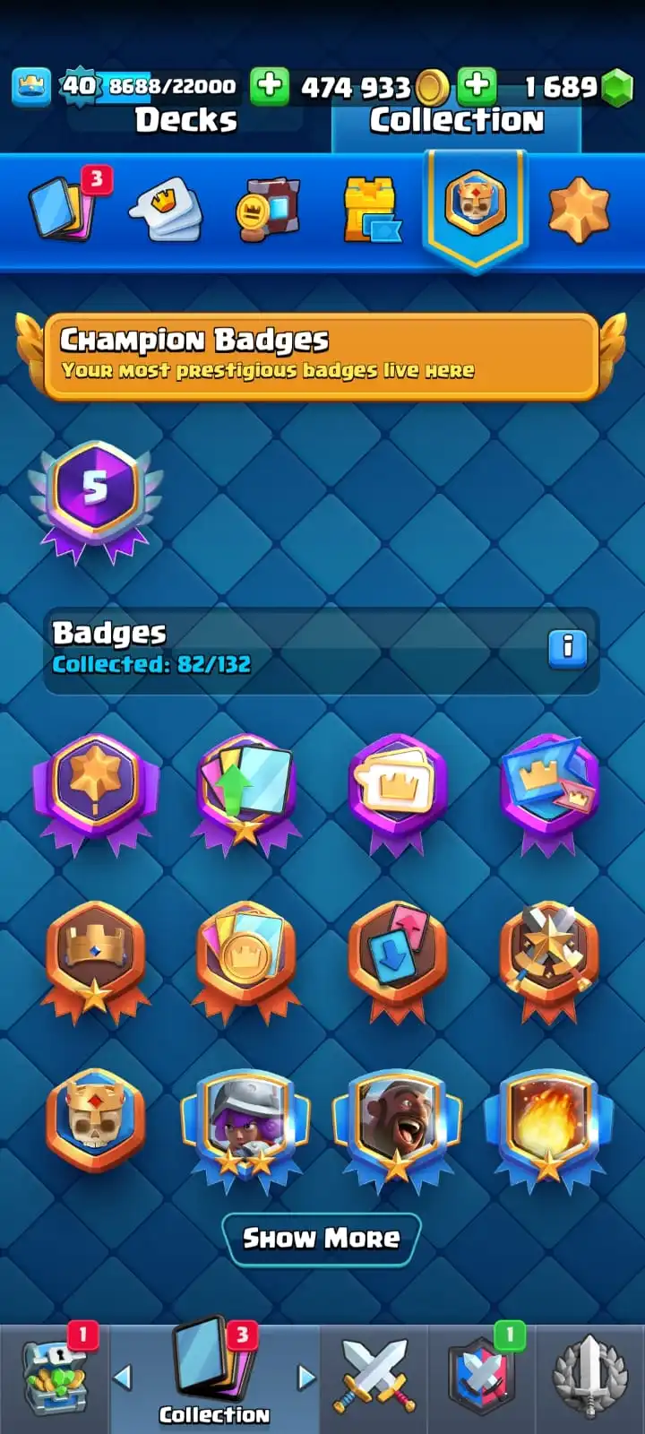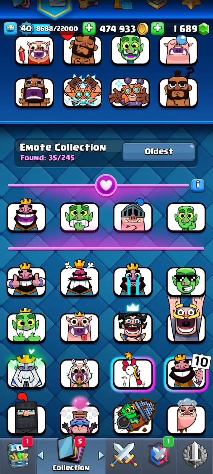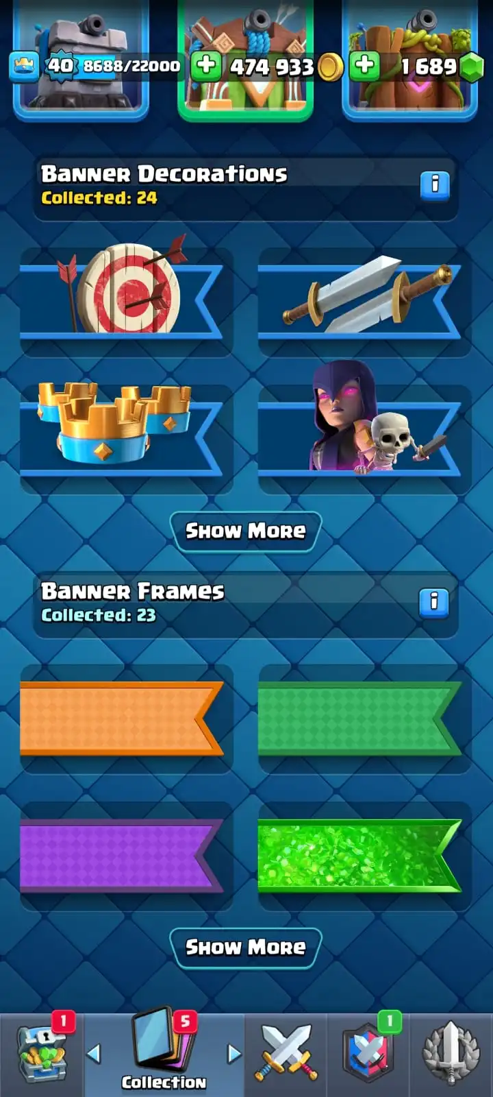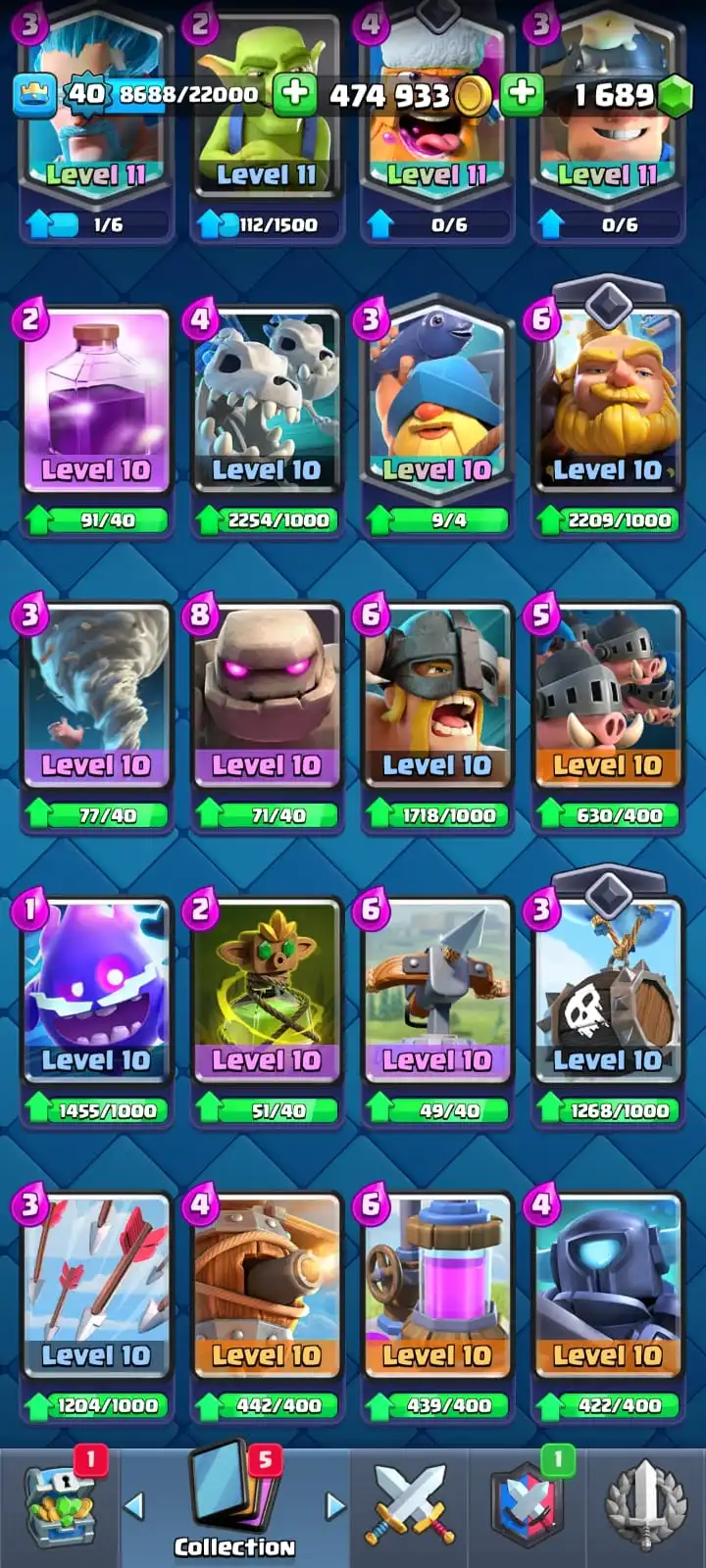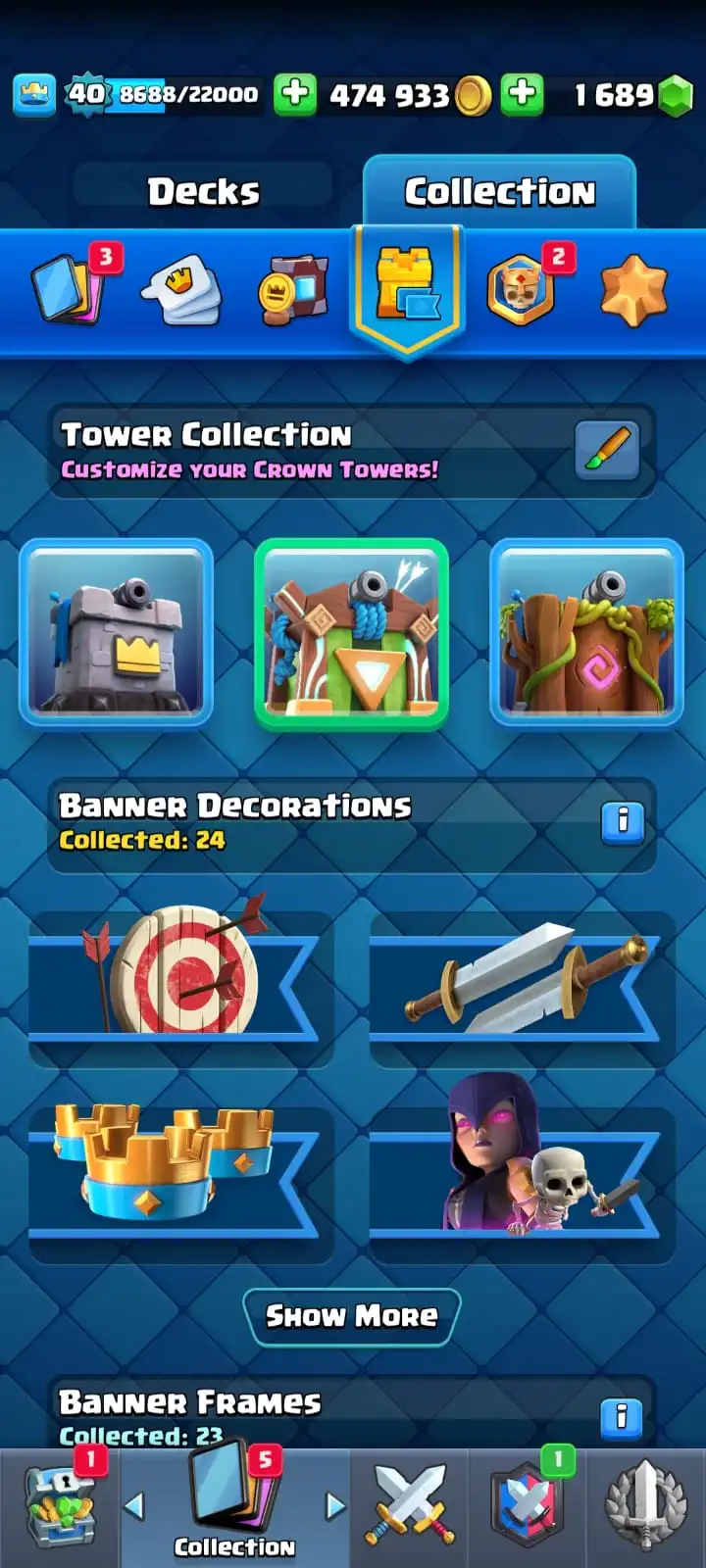 5 YR OLD CR 8591 CUPS ⚔️ | FREE NC 🎁 | 5 MAX CARDS 💥 | 35 EMOTES 😂 | 3 TOWER SKIN 🏰 | 82 BADGES 🏅 | 24 DECORATION 🎨 | 23 FRAMES 🖼️ | KT 13 💫 | ARENA 22 🏟️ | LEVEL 40 🚀 | OP SKINS 🔥