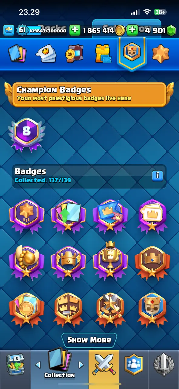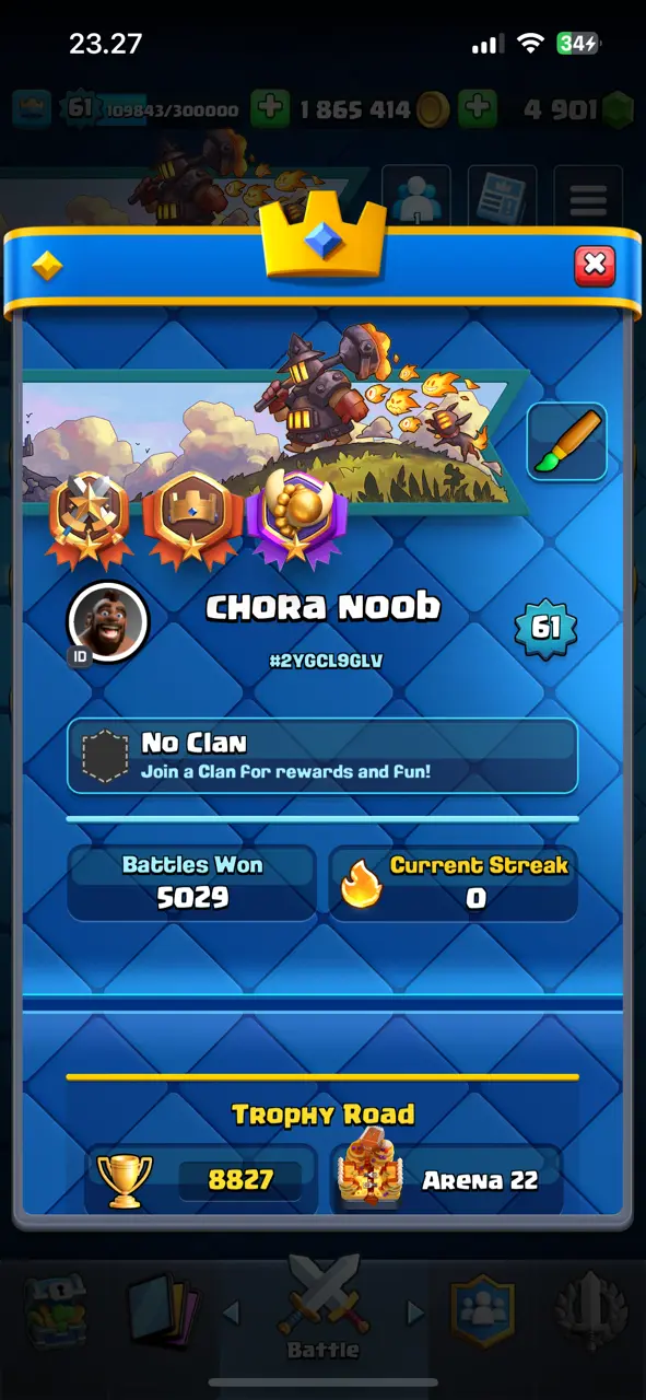 🔥 Amazing Rarest 🔥 CR Lv.61 🔥 8 Years Played 🔥 Change Name ON 🔥 Arena 22 🔥 8827 Trophies 🔥 KT 15 🔥 20 Evo Cards 🔥 110 Max Cards & 25 Elites 🔥 175 Emotes 🔥 15 Tower Skins 🔥 [F2789] 🔥