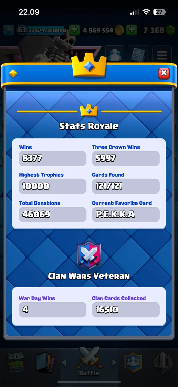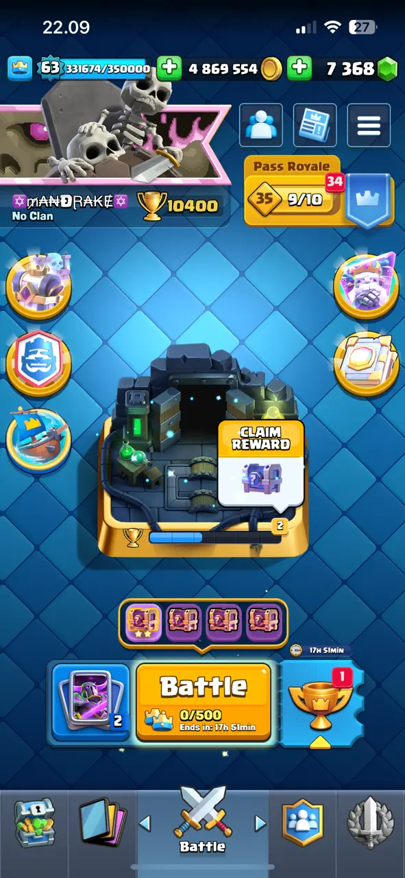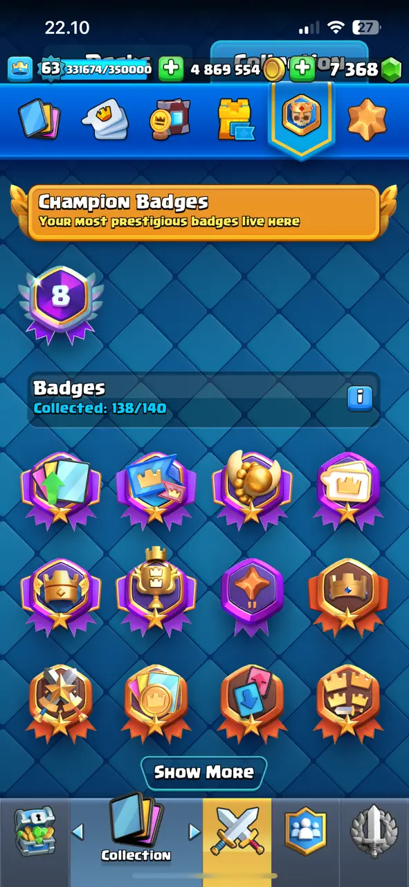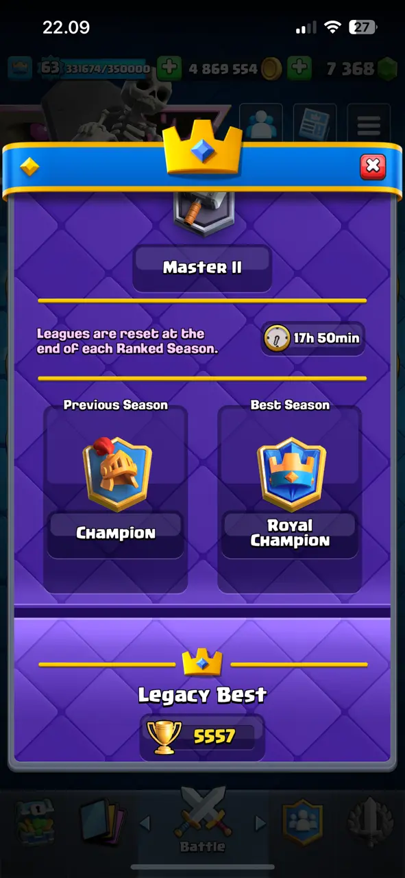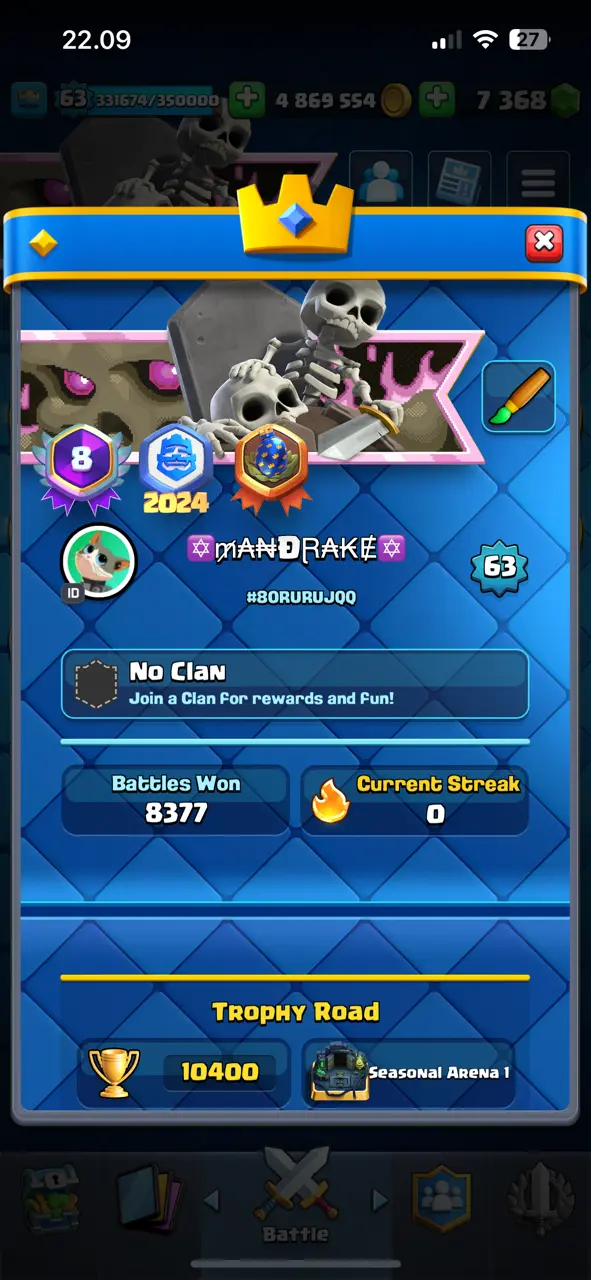 🔥 Combo CR+BS 95/95 Max 🔥 CR Lv.63 🔥 8 Years Played 🔥 Change Name ON 🔥 Seasonal Arena 1 🔥 10400 Trophies 🔥 KT 15 🔥 21 Evo Cards 🔥 114 Max Cards & 40 Elites 🔥 199 Emotes 🔥 19 Tower Skins 🔥 [F2784] 🔥