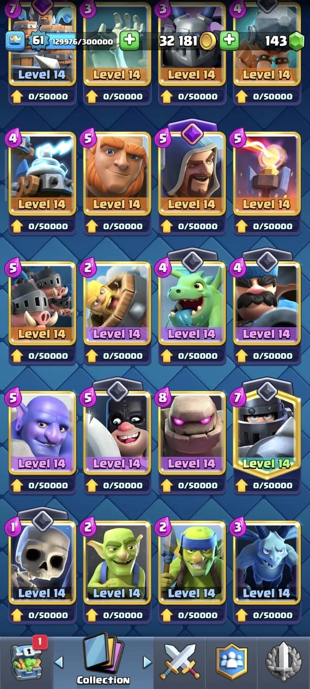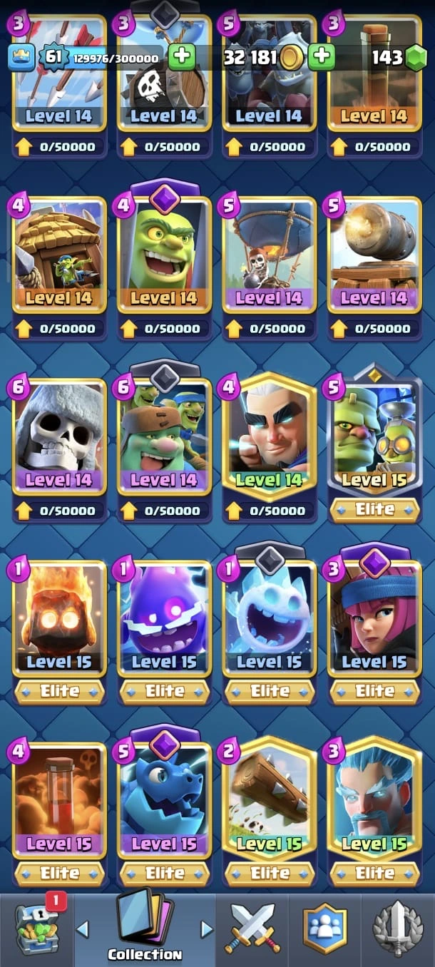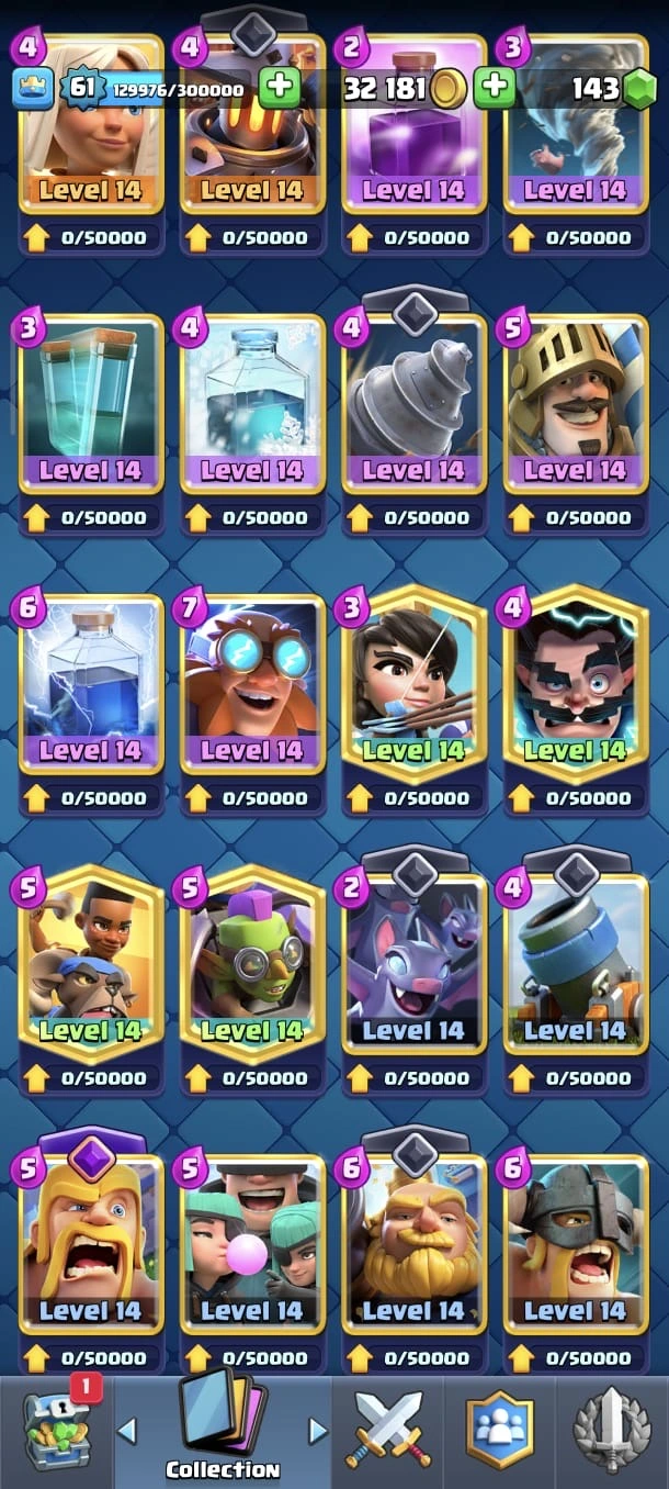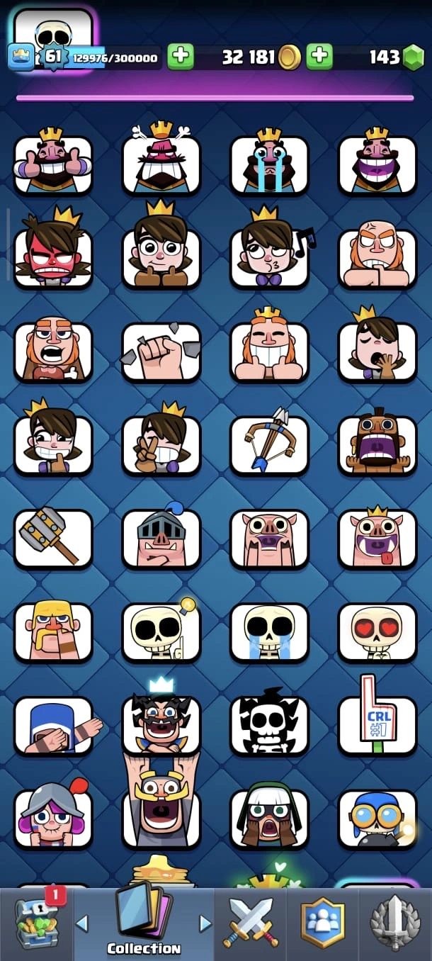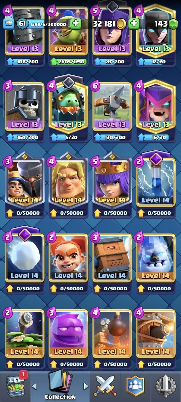 CR LV 61 🔥 Max Cards 90 🔥 Elite 26 🔥 Evo 17 🔥 Emote 208 🔥 Trophy 13645 🔥 Change name 500 🔥 Guaranteed account🔥