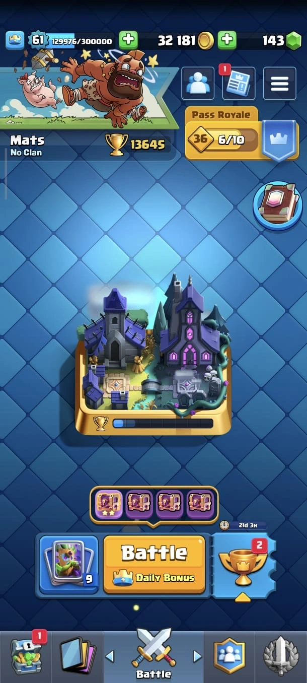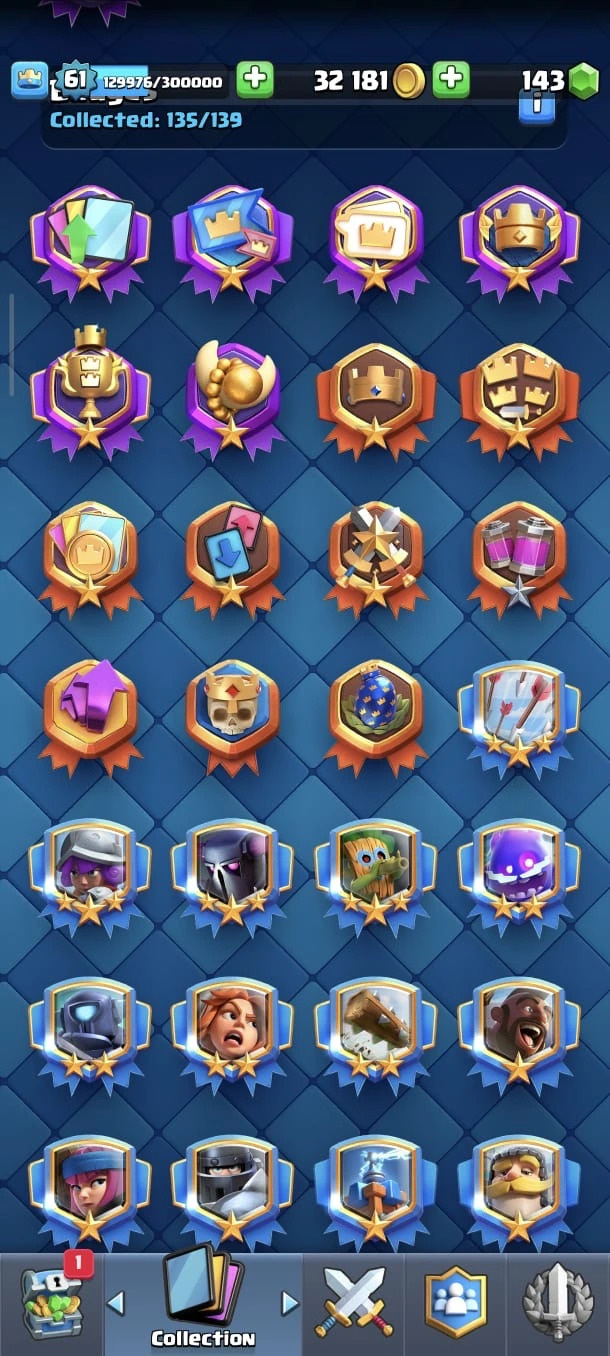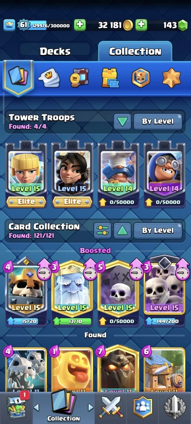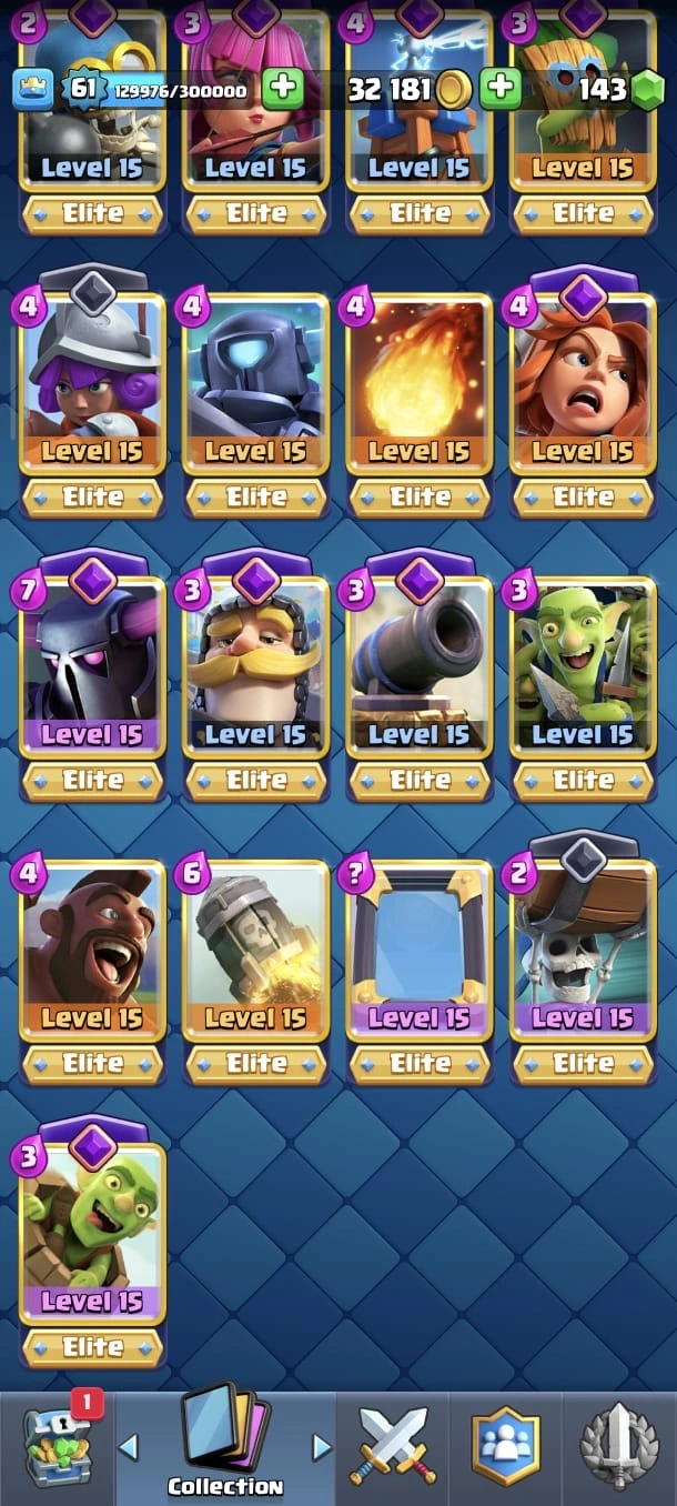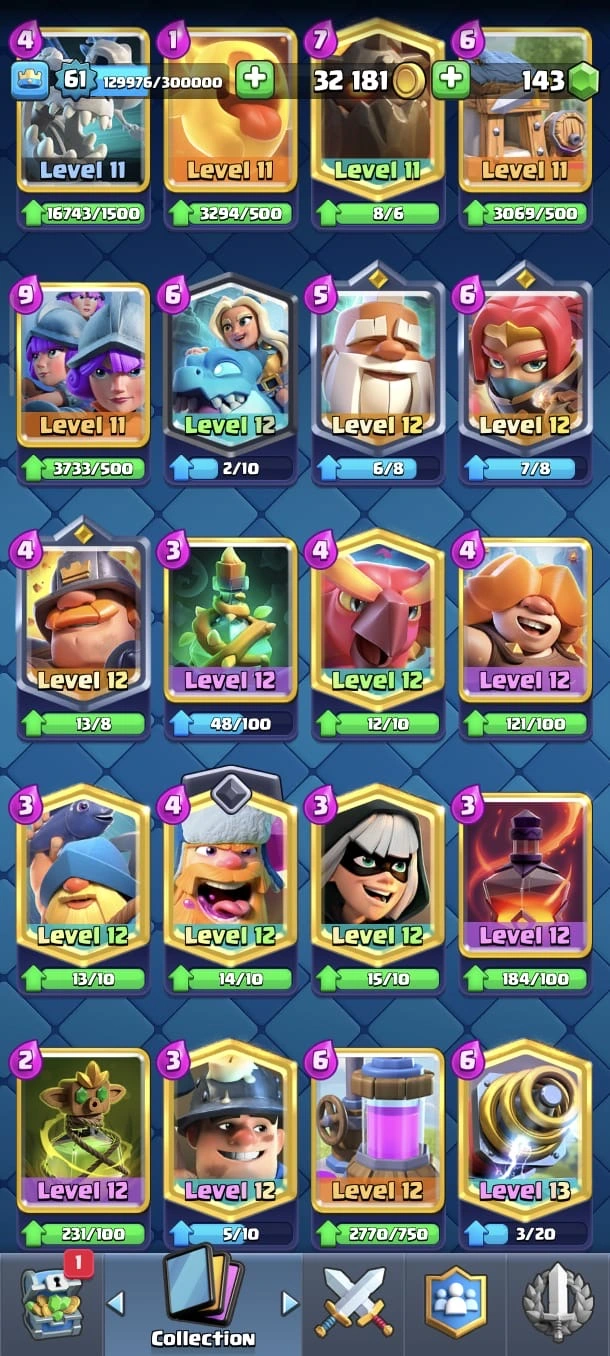 CR LV 61 🔥 Max Cards 90 🔥 Elite 26 🔥 Evo 17 🔥 Emote 208 🔥 Trophy 13645 🔥 Change name 500 🔥 Guaranteed account🔥