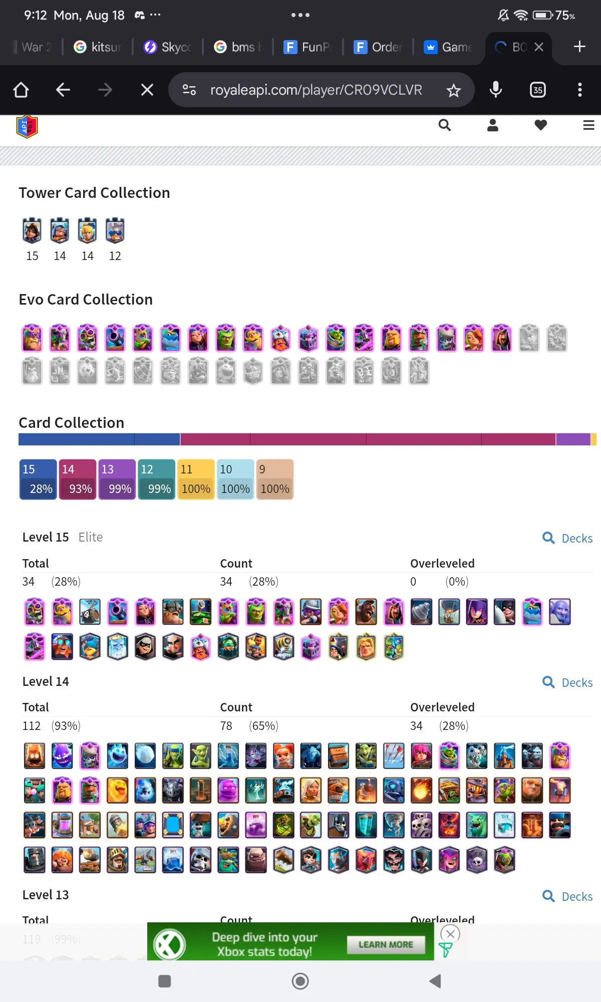 💢 KT 15 💢 10000 CUPS 💢 112 MAX CARDS 💢 34 ELITES 💢 18 EVOLUTIONS 💢 183 EXCLUSIVE EMOTES 💢 INSTANT DELIVERY 💢 CC23