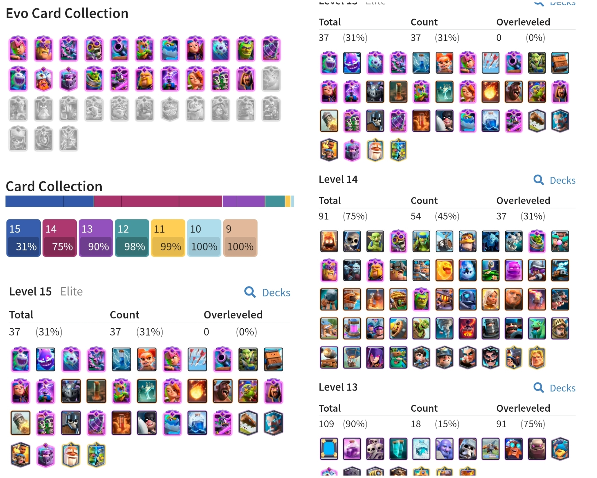 KT 15 | Lvl 62 | 15141 Trophies | 21 Evolution | 91 Max Cards | 37 Elites | 131 Emotes | Instant Delivery
