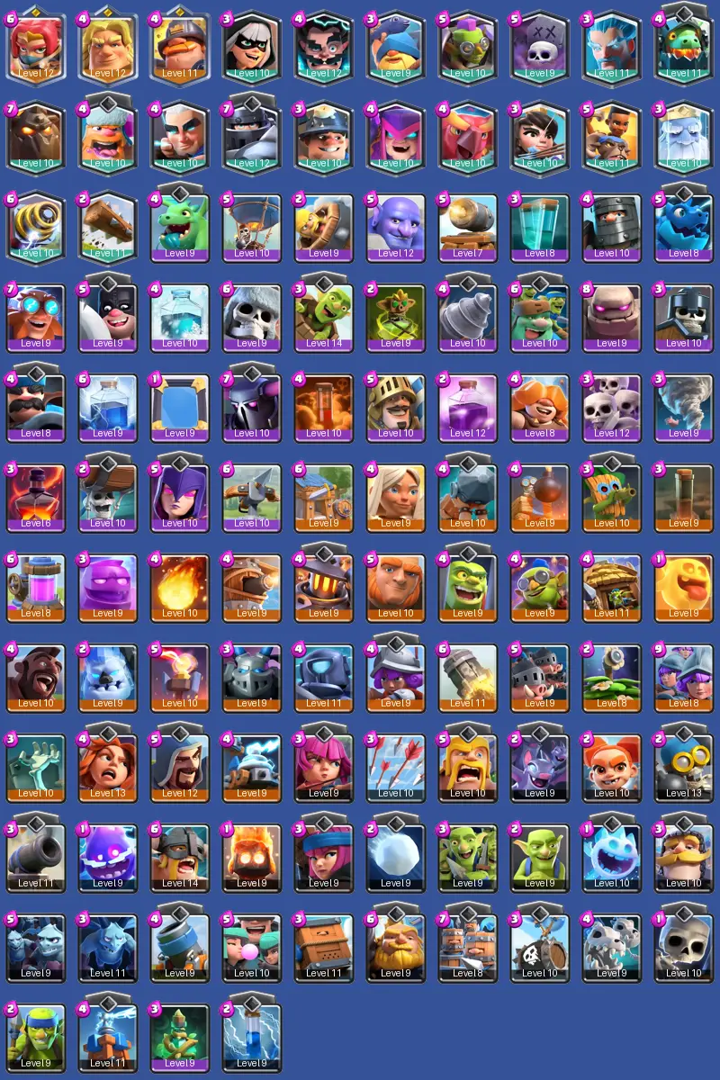 [KT12] | Level 35 | 7232 Trophies | Arena 19 | 114/125 Cards | 734 Wins | 2 Max | 3 Champions | 19 Legendary | 31 Epic | Full Access | S4G
