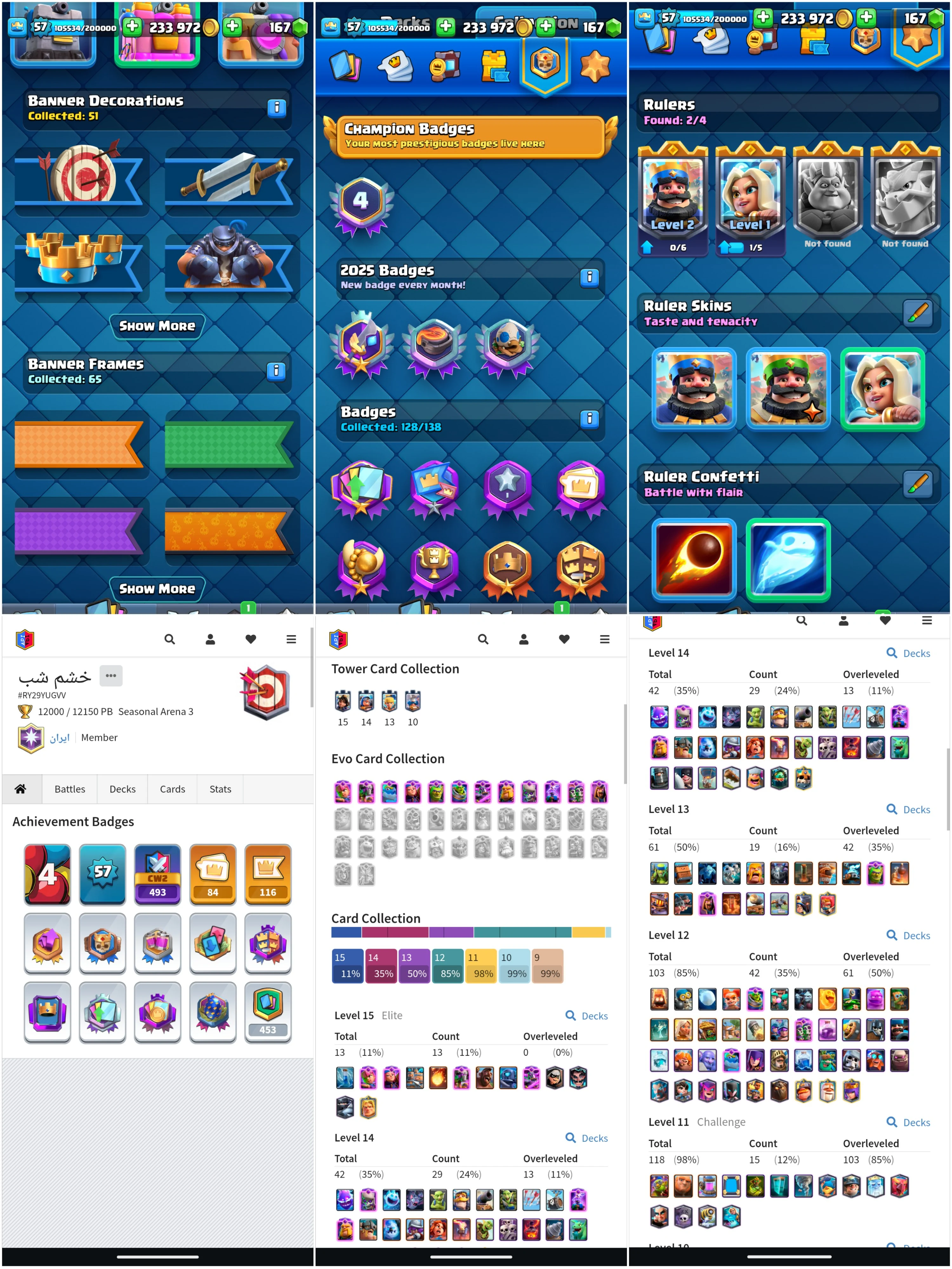 Level 57 + KT 15 ✨ 12000 Trophies 🏆 4 Years Played Badge 🏅 42 Max Cards {13 Elites} 🔢 + 12 Evos 🔥 84 Stacked Emotes 🎭 Instant Delivery