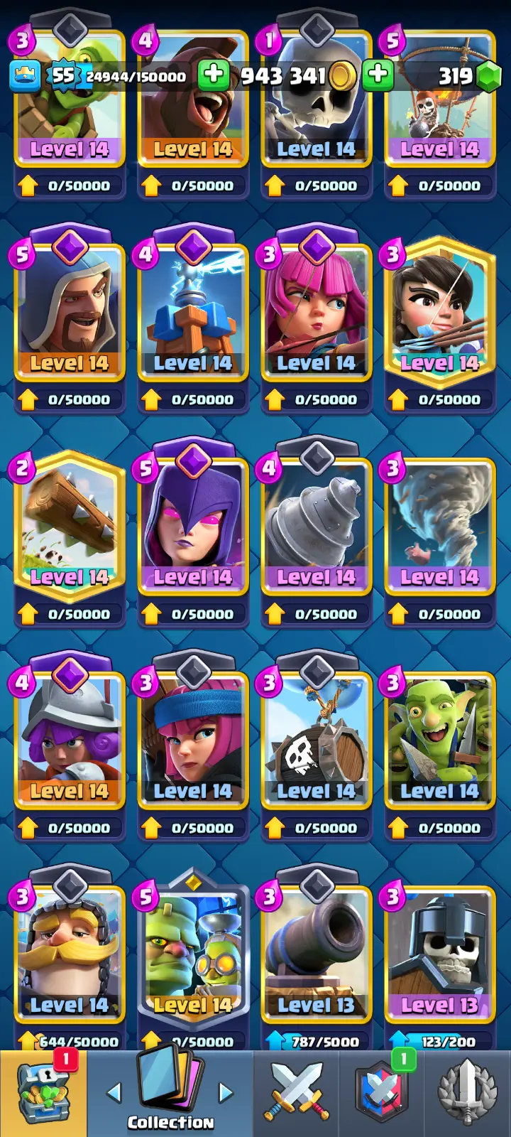 RARE EMPEROR KING 🔥 LVL 55 🏆 10.7K+ TROPHIES 👾 14 EVOS [ 2 SHARDS ] ☠ 28 MAX CARDS [ 9 ELITES + 35K ELITE CARDS ] 😍 100+ PREMIUM EMOTES [ GOBLIN KISS EMOTE ⸱ PRINCESS KISS EMOTE ] 🤝 SAFEST AND INSTANT DELIVERY!