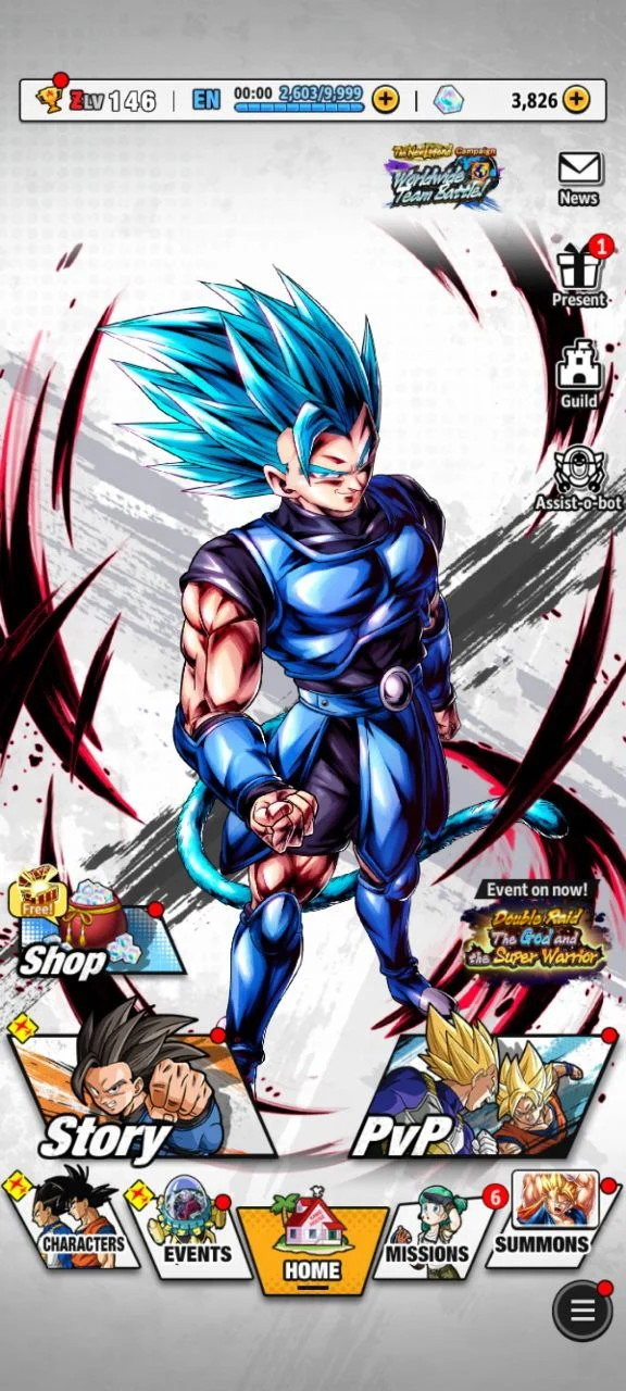 iOS/Android ⚔️ Global 🌐 Level 146 🛍️ Crystal 3826 🏆 Character 296 💯 Super Saiyan & Super Saiyan God SS 🗡️ Legends 12 🔑 Code1374