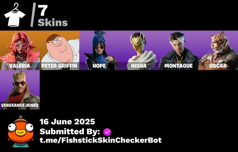 ăPC/PSN/XBOXă6 Skins | Valeria | Peter Griffin | Hope | Nisha | Montague | Oscar | Vengeance Jones | Spectra Protector | Piñata Brian | Ruby Relic | Ratacat | 550 VB | FS40