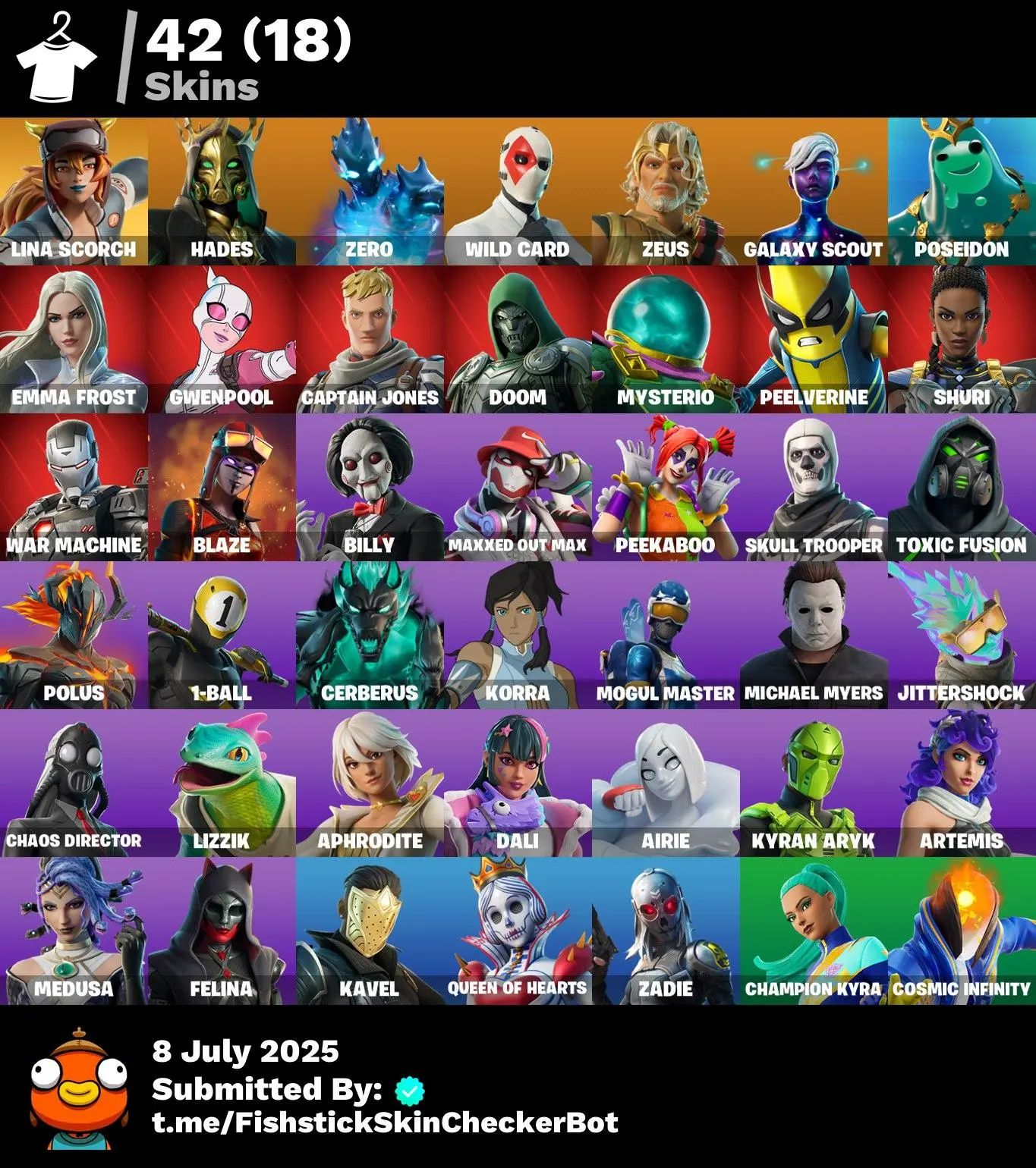 ăPC/PSN/XBOXă42 Skins | Lina Scorch | Hades | Zero | Wild Card | Zeus | Galaxy Scout | Poseidon | Emma Frost | Gwenpool | Captain Jones | Doom | Mysterio | 0 VB | FS6