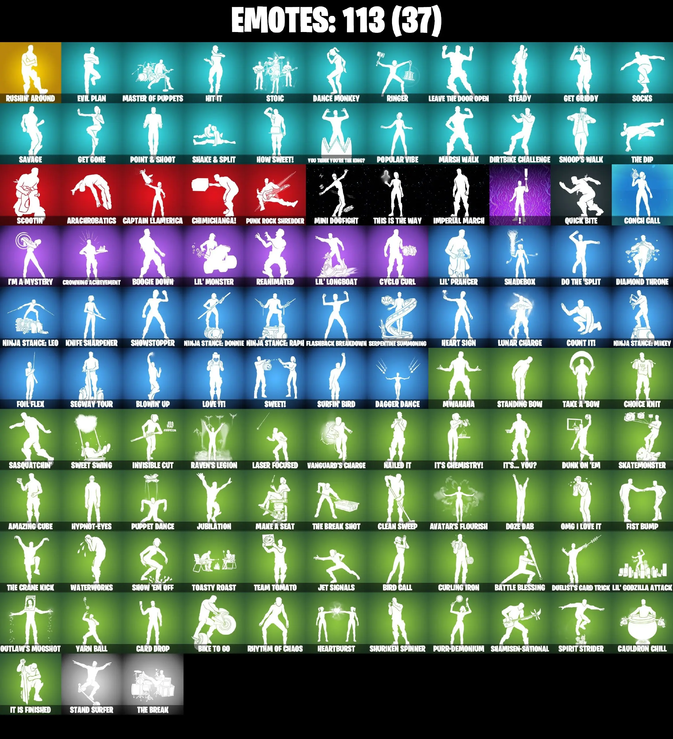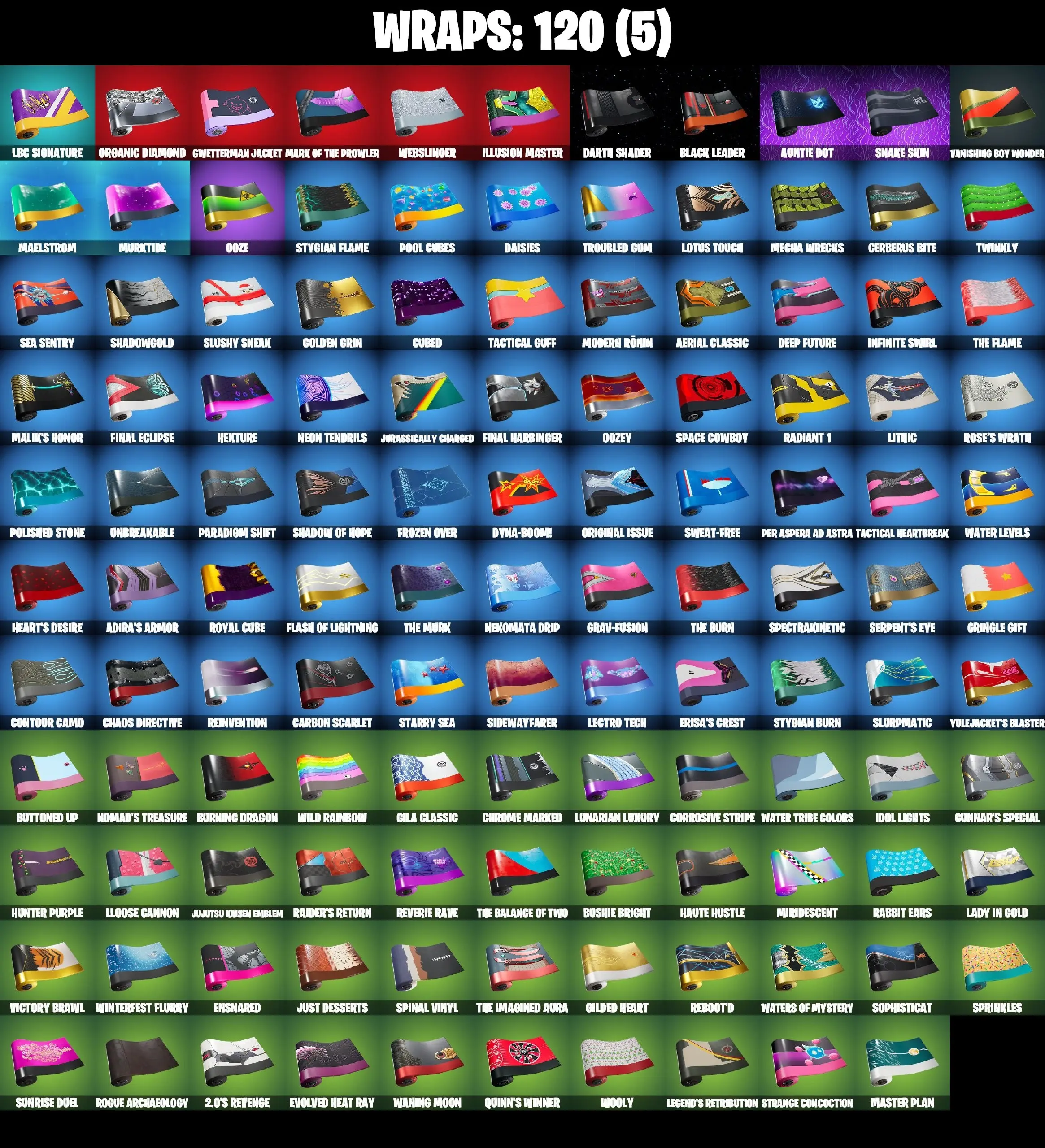105 SKINS | DARK SKULLY | JOLTARA | SPIDER-MAN NO WAY HOME | MJ | SPIDER-GWEN STACY | OUTLAW MIDAS | RUSHIN AROUND | GET GRIDDY | ANAKIN SKYWALKER | IMPERIAL STORMTROOPER | DARTH VADER | TOY TROOPER | HUMAN BILL | CHAOS DIRECTOR M
