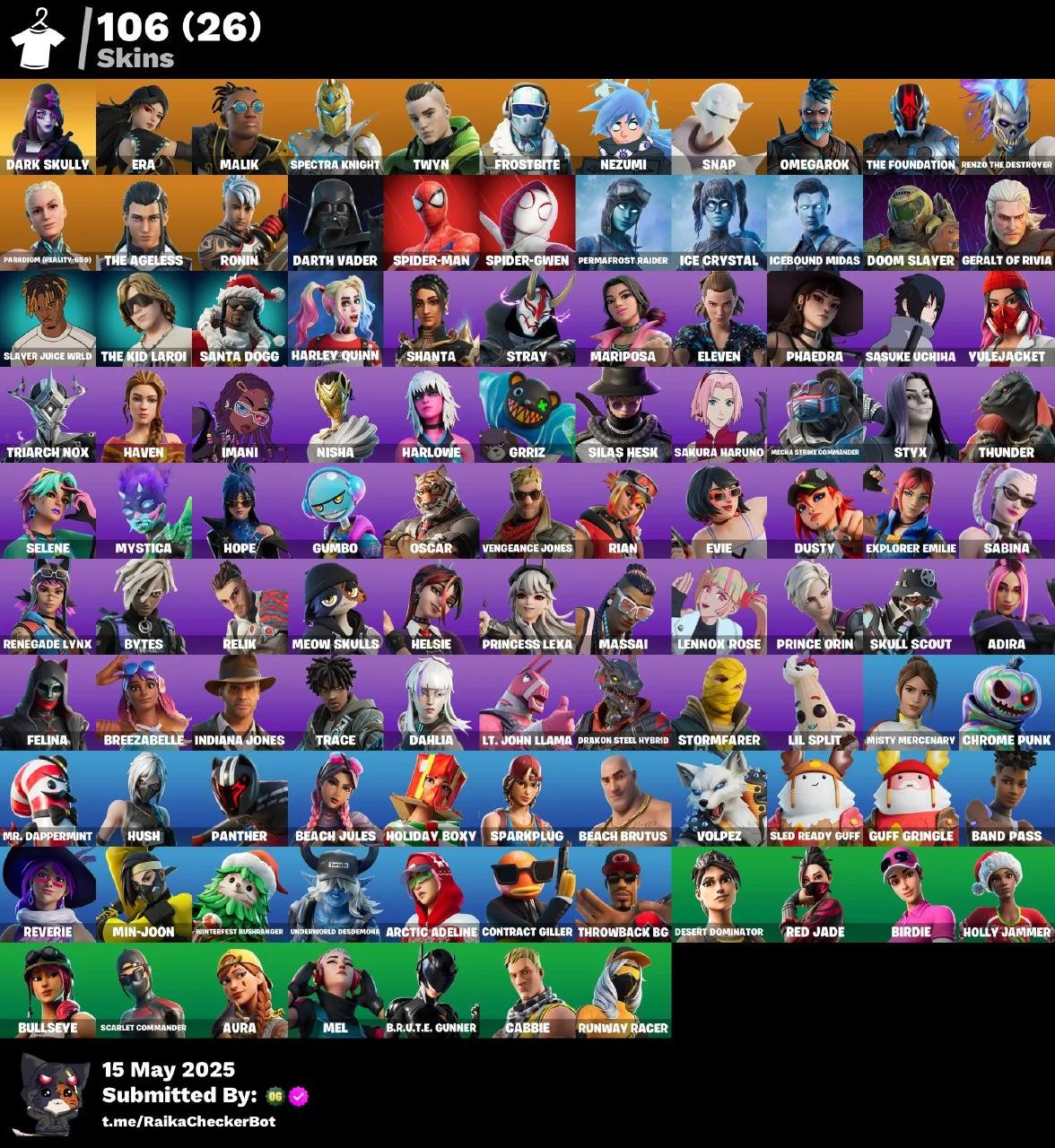 106 skins | Dark Skully | Era | Malik | Spectra Knight | Twyn | Frostbite | Nezumi | Snap | Omegarok | The Foundation | Renzo the Destroyer | Nai@1