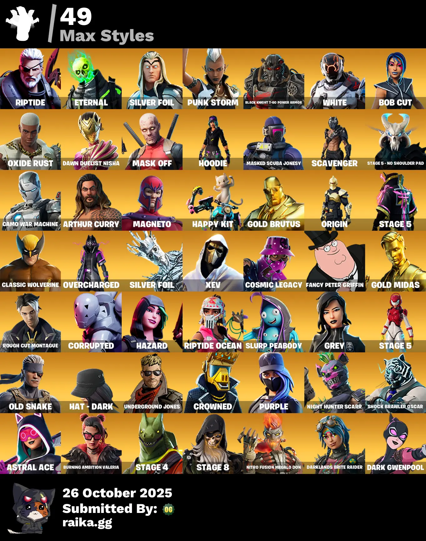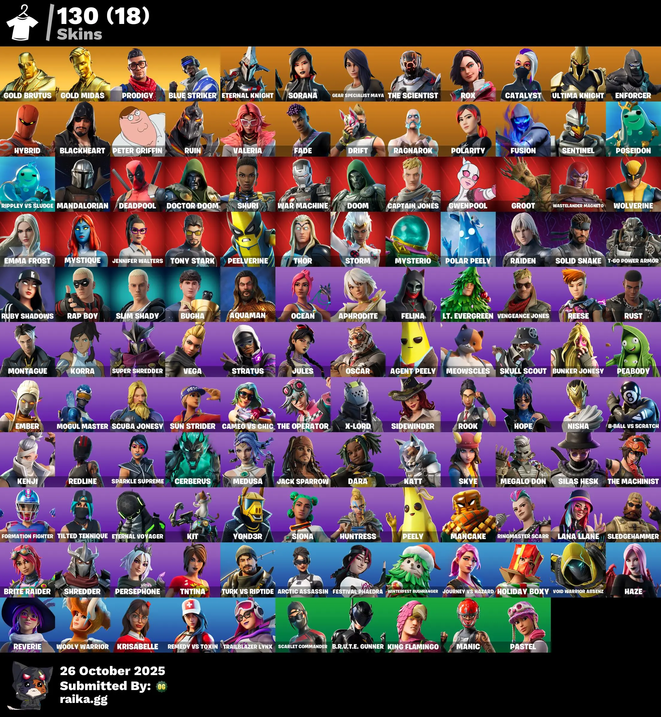 130 skins | Prodigy🎃Gold Midas🎃Hot Marat🎃Orange Justice🎃Mecha Team Banner🎃Take The Elf🎃Controller🎃Blue Shift🎃Rox🎃Basic Basher🎃Flappy🎃Astro Jack🎃Verve🎃Rage🎃Blue Striker🎃Blackheart🎃Gold Brutus🎃Ultima Knight🎃Tabulator D3882