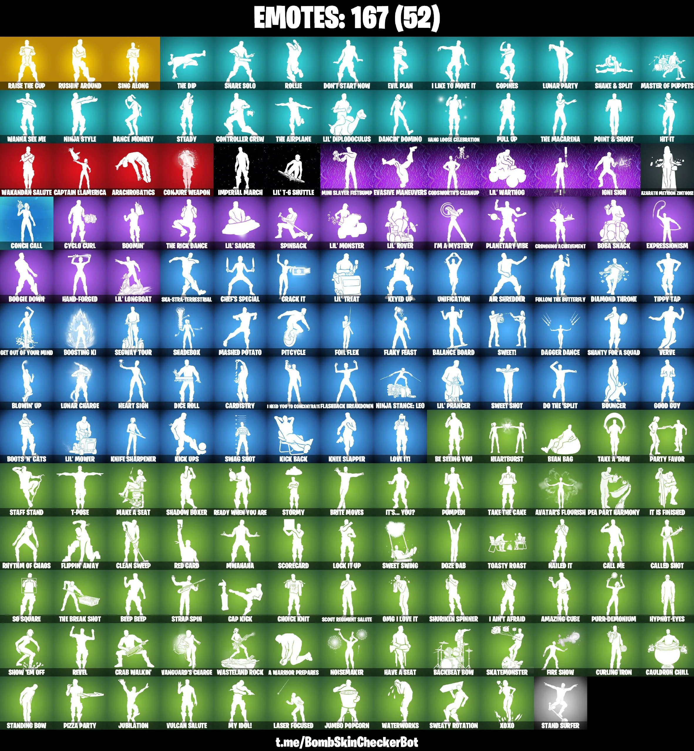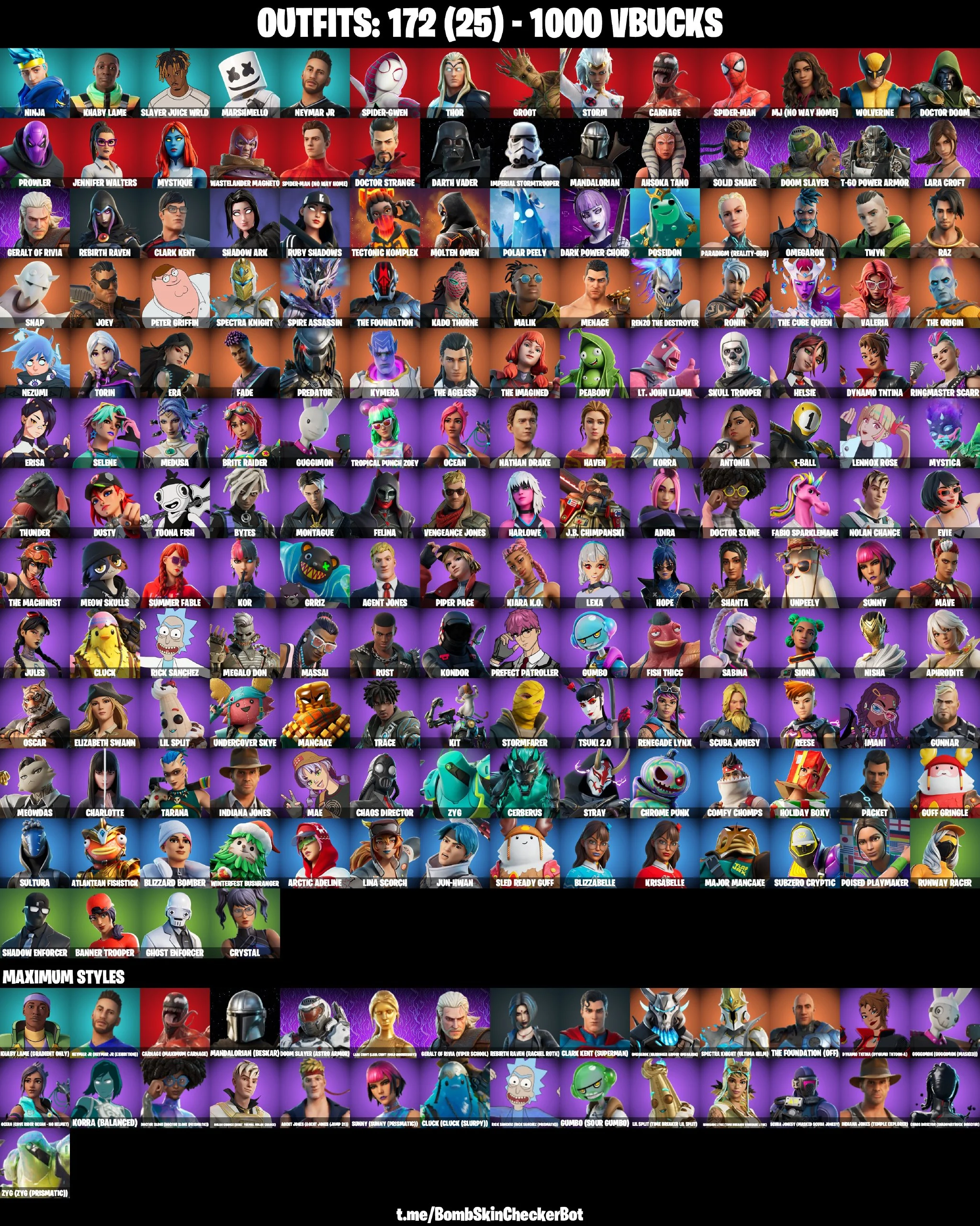 🔮172 Skins🔮 Raise The Cup💎Rushin Around💎Skull Trooper💎Spider Gwen💎Darth Vader💎Crystal💎Lara Croft💎Neymar Jr💎Erisa💎Jules💎Clark Kent💎Polar Peely💎Blizzabelle💎Krisabelle