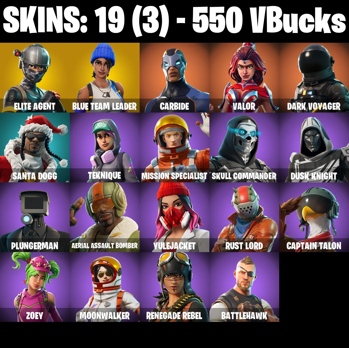 🎆19 SKINS ⚡️PC/XBOX⚡️ ELITE AGENT 👑 BLUE TEAM LEADER 👑 CARBIDE 👑 VALOR 👑 DARK VOYAGER 👑 SANTA DOGG 👑 TEKNIQUE 👑 MISSION SPECIALIST ⚡️ 550 VB #M563