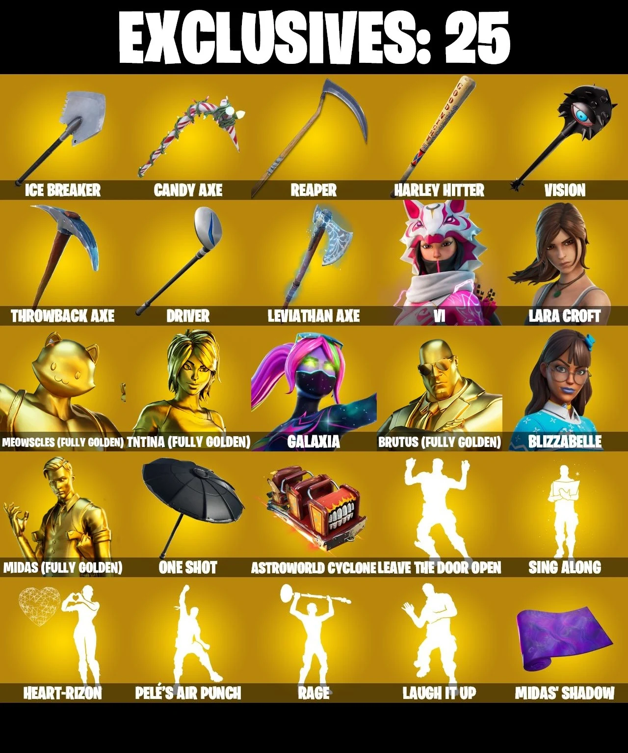 👑202 Skins 👑PC/PSN/XBOX👑 Leviathan Axe 👑 Lara Croft 👑 Midas (Fully Golden) 👑 Galaxia 👑 Deadpool 👑 Groot 👑 Blaze 👑