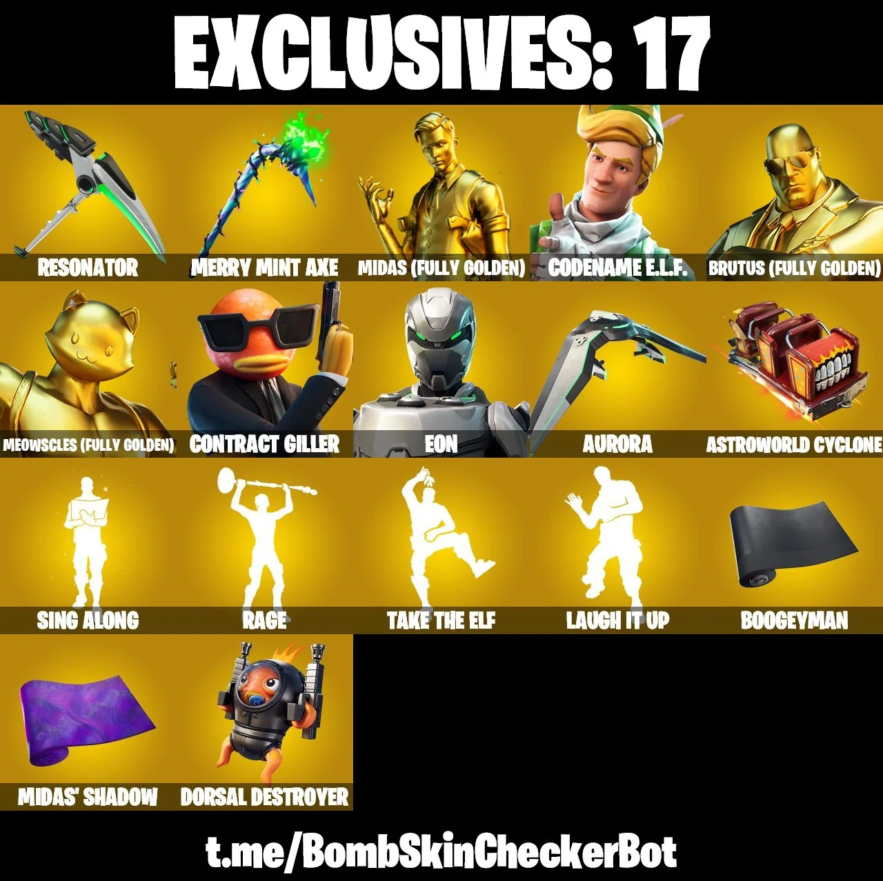 【231 SKINS】 EON ❤️ GOLD BRUTUS ❤️ GOLD MIDAS ❤️ MERRY MINT AXE ❤️ PARENTAL CONTROL ❤️ (PC/PSN/XBOX)