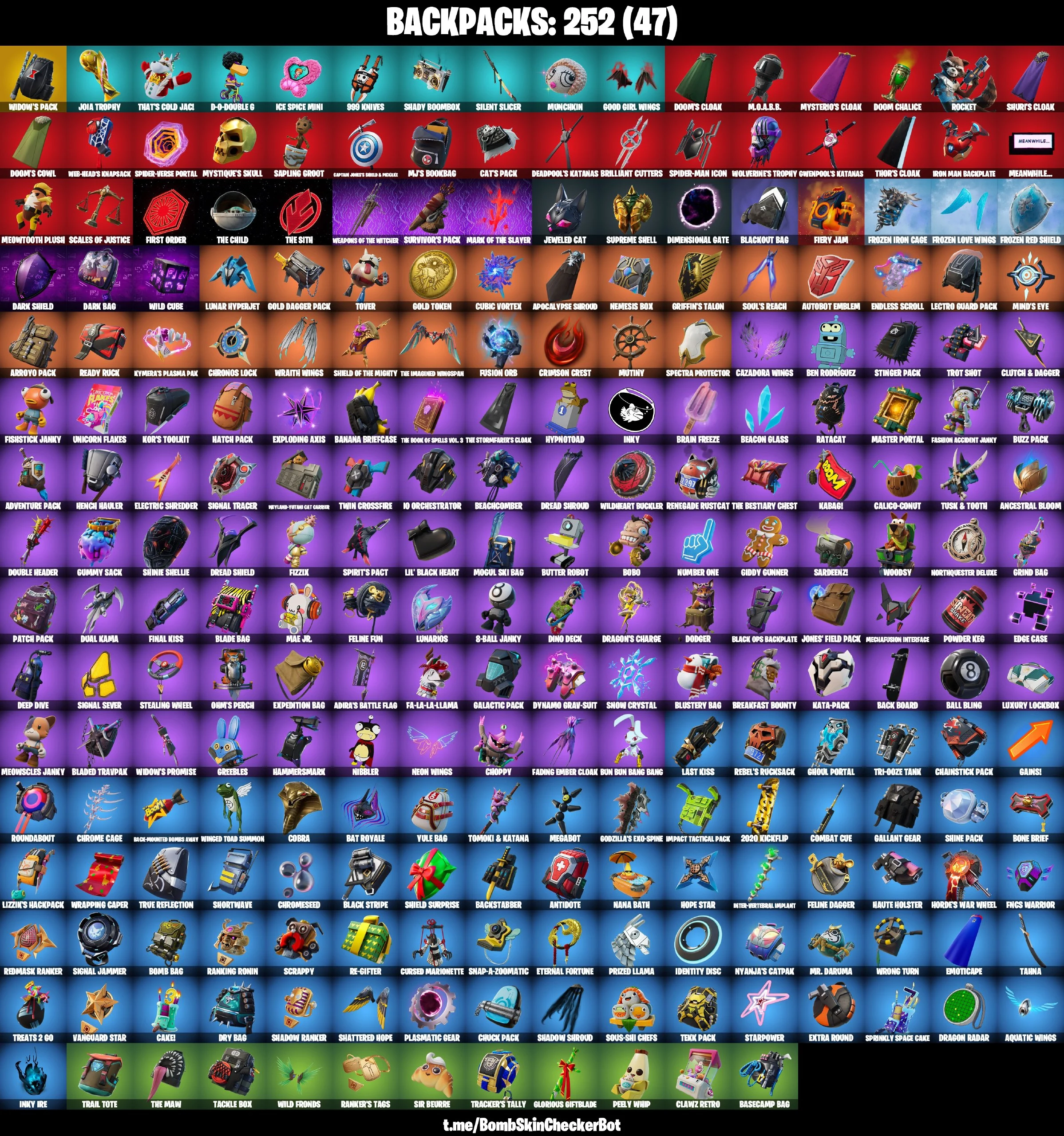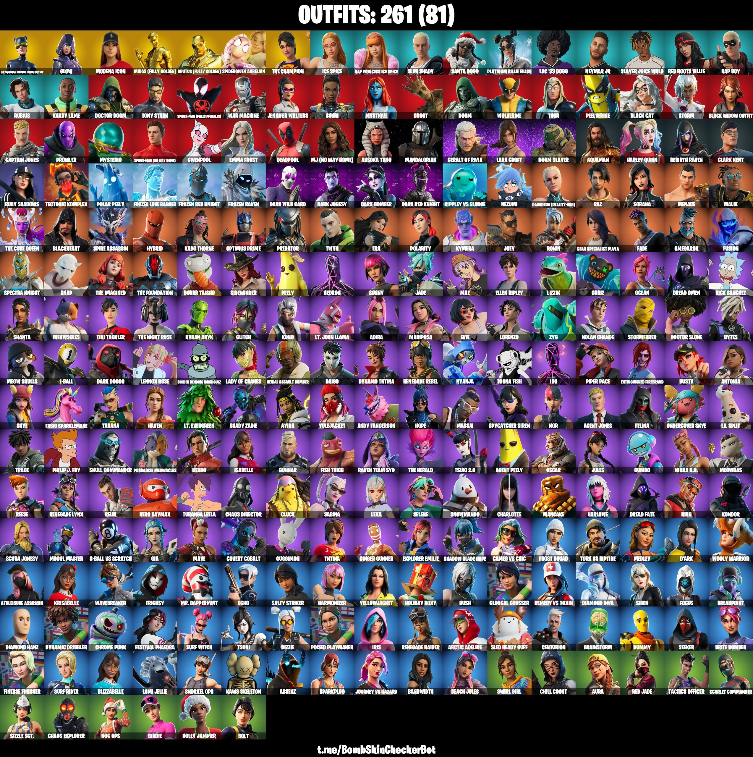 261 Skins| Spidergwen Stacy, Black Widow, Miles Morales, Glow, Rage, Harley Hitter|Full Access