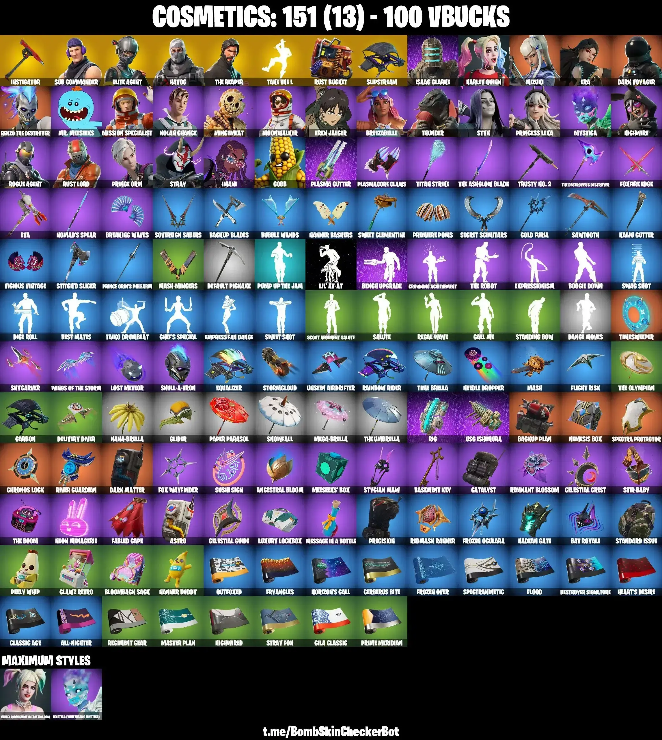 28 SKINS | TAKE THE L | THE REAPER | ELITE AGENT | HAVOC | SUB COMMANDER | ISAAC CLARKE | HARLEY QUINN MAX | EREN JAEGER | MYSTICA MAX | RUST BUCKET | CAN PLAY ON PSN,XBOX,PC,NINTENDO,MOBILE | 100 VBUCKS | FULL EMAIL ACCESS