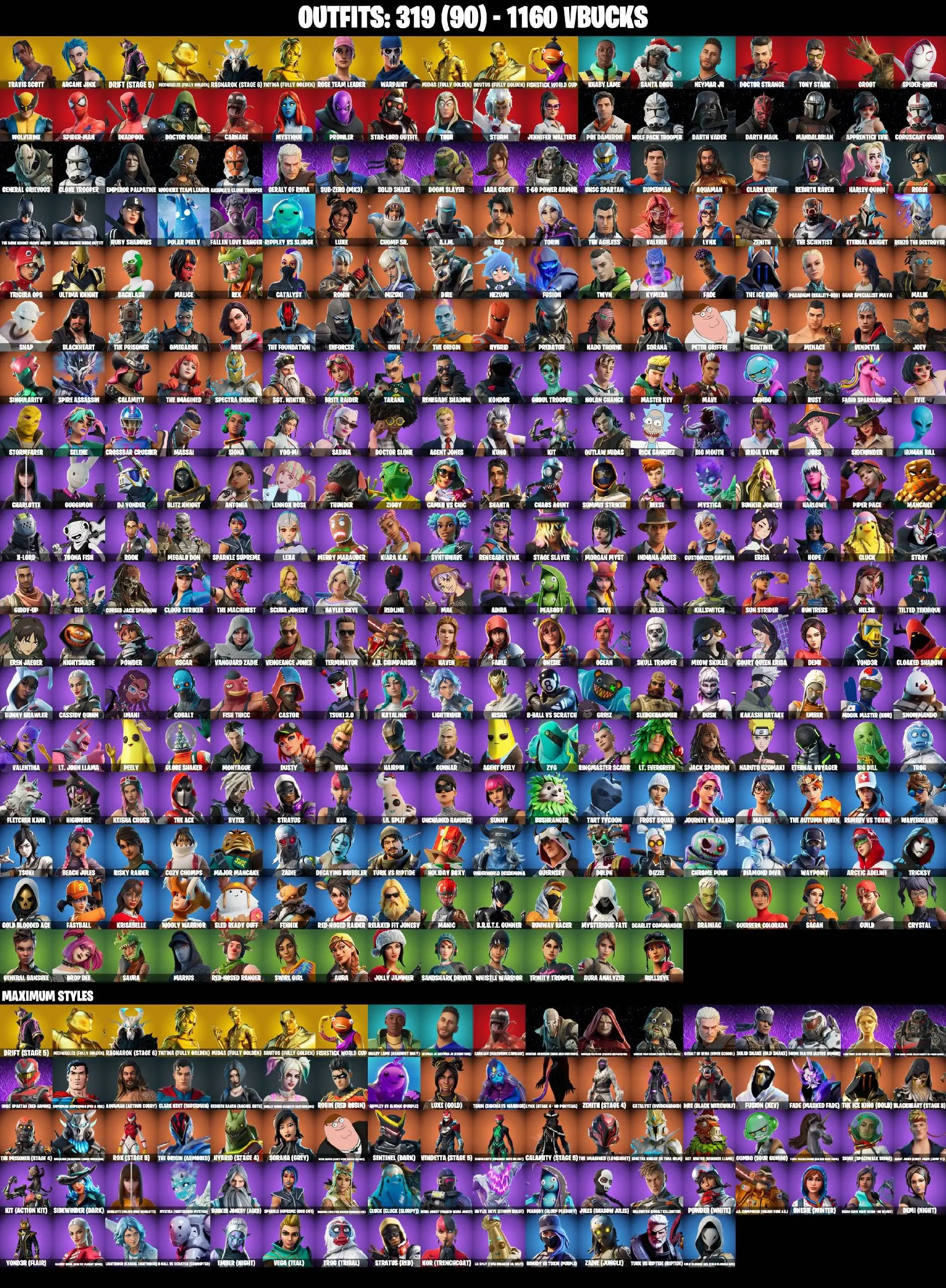 319 SKINS ⸱ TRAVIS SCOTT ⸱ ARCANE JINX ⸱ GOLDEN TNTINA ⸱ TIDY ⸱ OG STW ⸱ GHOUL TROOPER ⸱ STAR WARS SKINS ⸱ BACKLASH ⸱ SPIDER-MAN ⸱ SPIDER-GWEN ⸱ SKULL TROOPER ⸱ RAGE ⸱ STUCK ⸱ HAYLEE SKYE ⸱ TERMINATOR ⸱ NARUTO ⸱ KAKASHI ⸱ HELSIE -