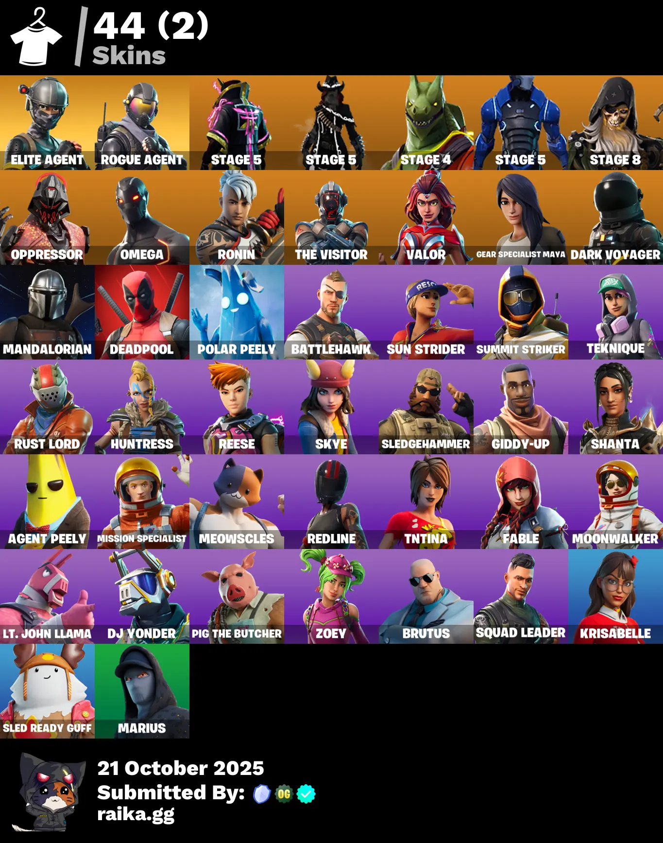 44 TOP SKINS OMEGA❤️ELITE AGENT❤️DRIFT STAGE 5❤️MANDALORIAN❤️DARK VOYAGER❤️TAKE THE L❤️ORANGE JUSTICE❤️RUST LORD❤️VALOR❤️GEAR SPECIALIST MAYA