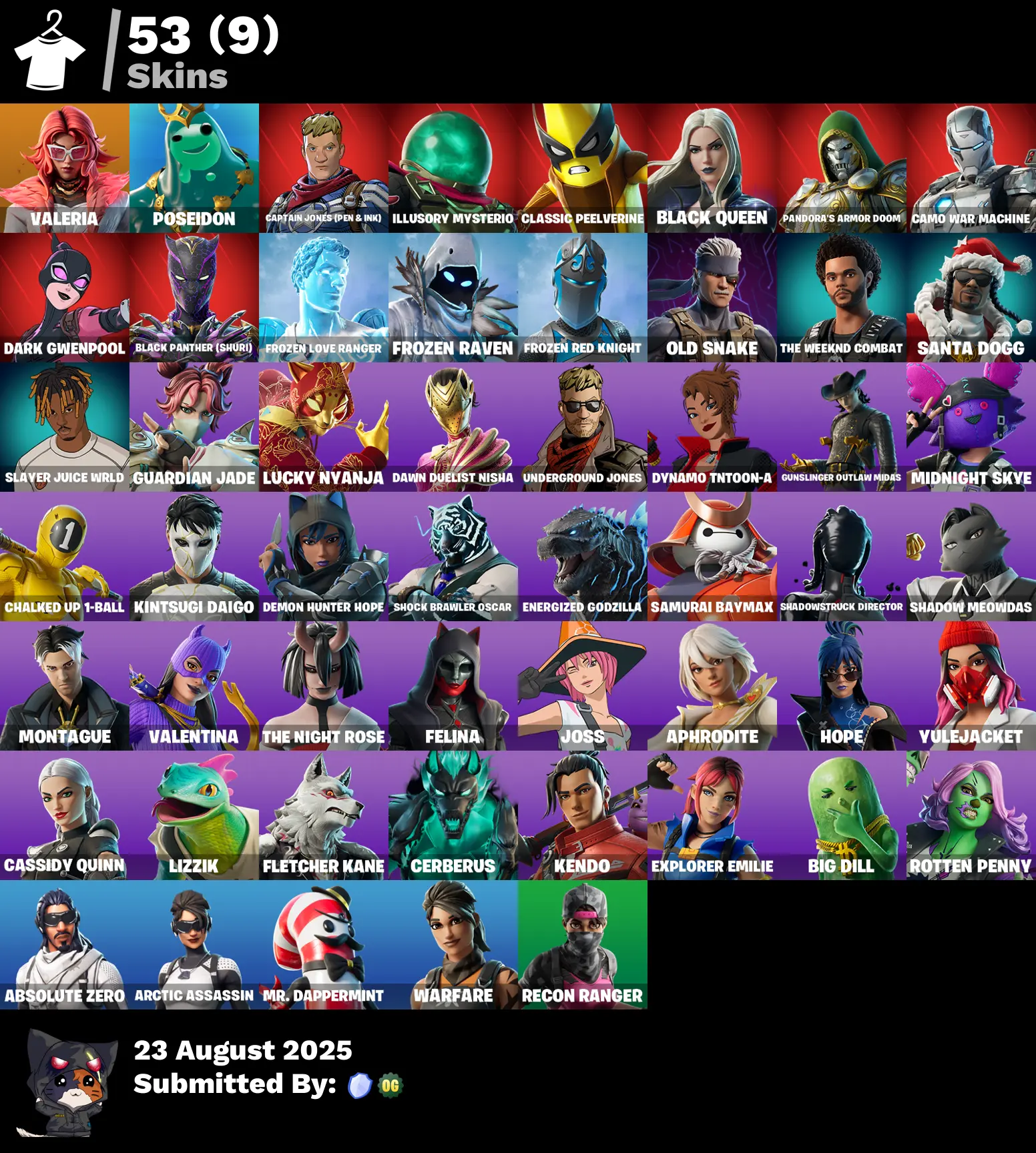 53 TOP SKINS [PC/PSN/XBOX] FROZEN RAVEN ✅ FROZEN RED KNIGHT ✅ FELINA ✅ VALERIA ✅ POSEIDON ✅ CAPTAIN JONES (PEN & INK) ✅ ILLUSORY MYSTERIO ✅ CLASSIC PEELVERINE
