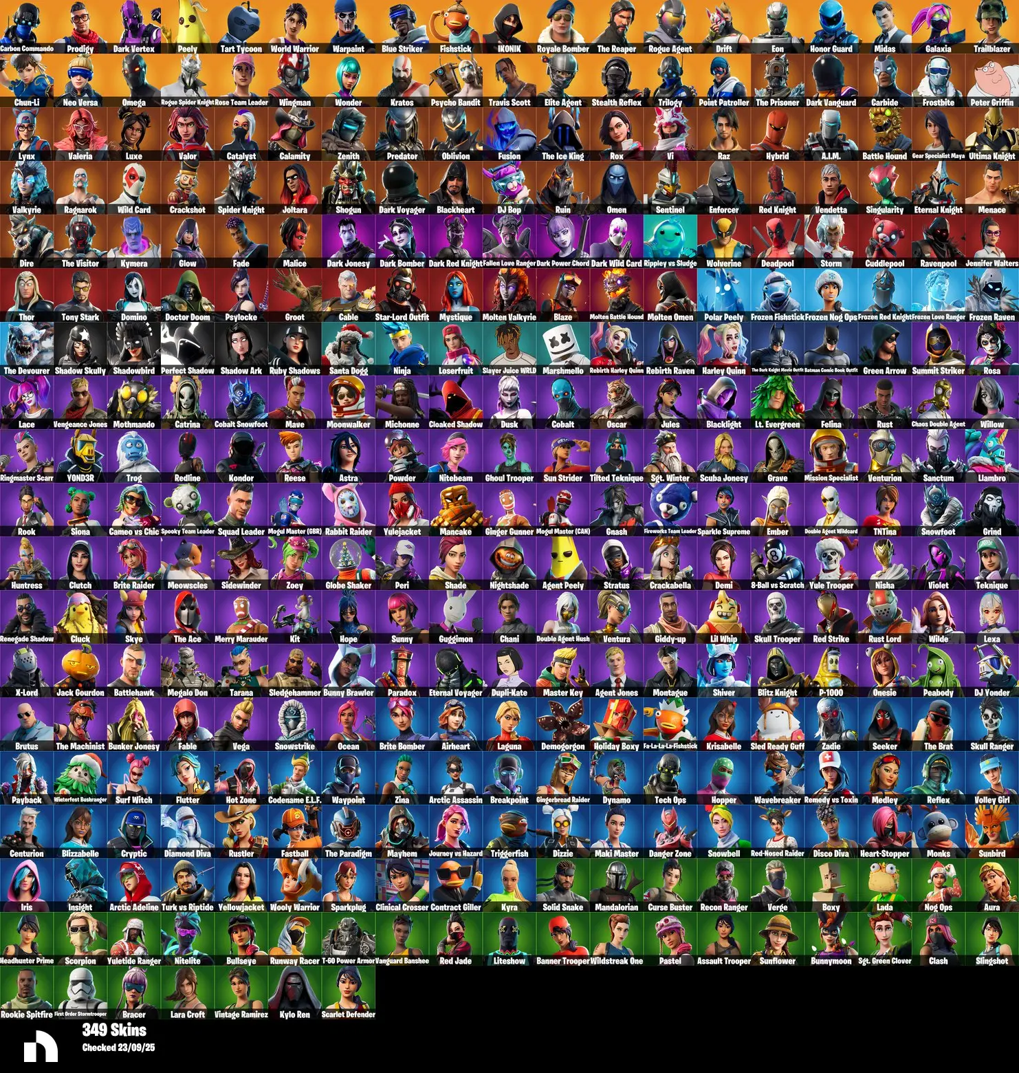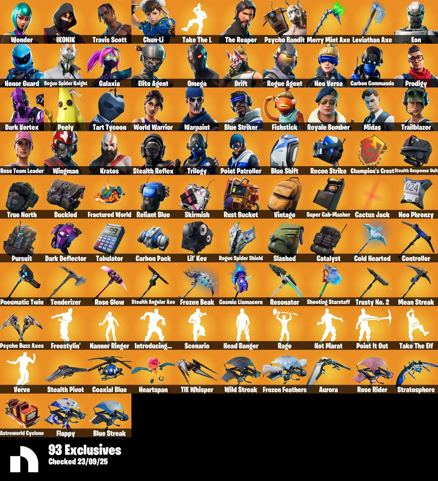 [PC] 349 Skins + OG STW + Wonder + Travis Scott + Ikonik + Stealth Reflex + Rogue Spider Knight + Dark Vertex + World Warrior + Galaxia + Eon + Leviathan Axe