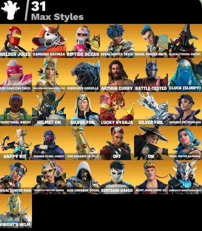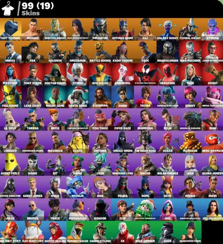 (PC PSN XBOX) 99 skins | leviathan axe /  Tart Tycoon | Raz | Eternal Knight | Optimus Prime | Menace | Kymera | Fade | Omegarok | Spectra Knight | Era | Oblivion | Predator | 300 VB / galax scout / lara croft