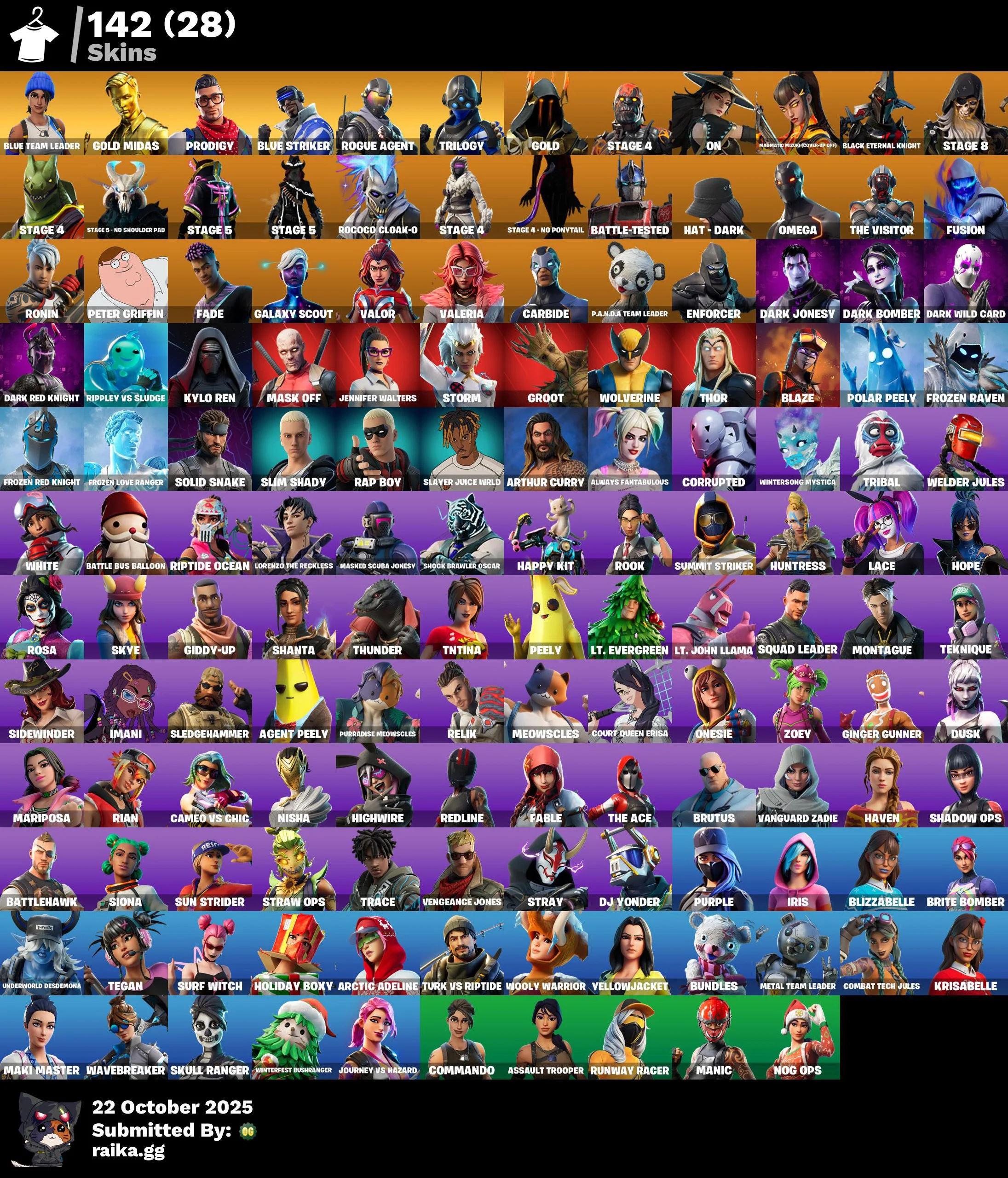 [PC/PSN/XBOX] 142 skins | Surf Witch | Peely | Omega | Harley Hitter | Jabba Switchway | Star Wand | Kylo Ren lai703