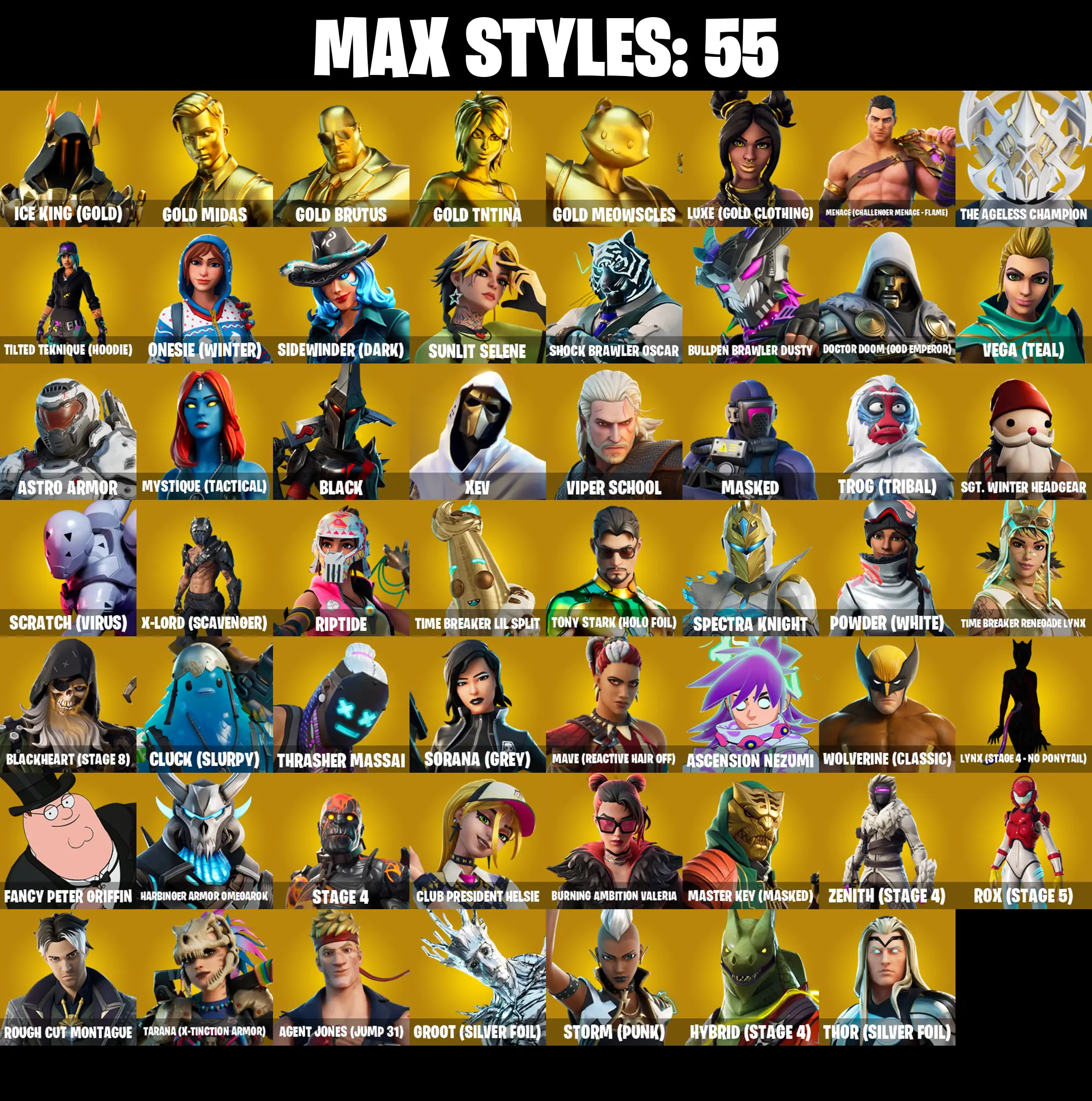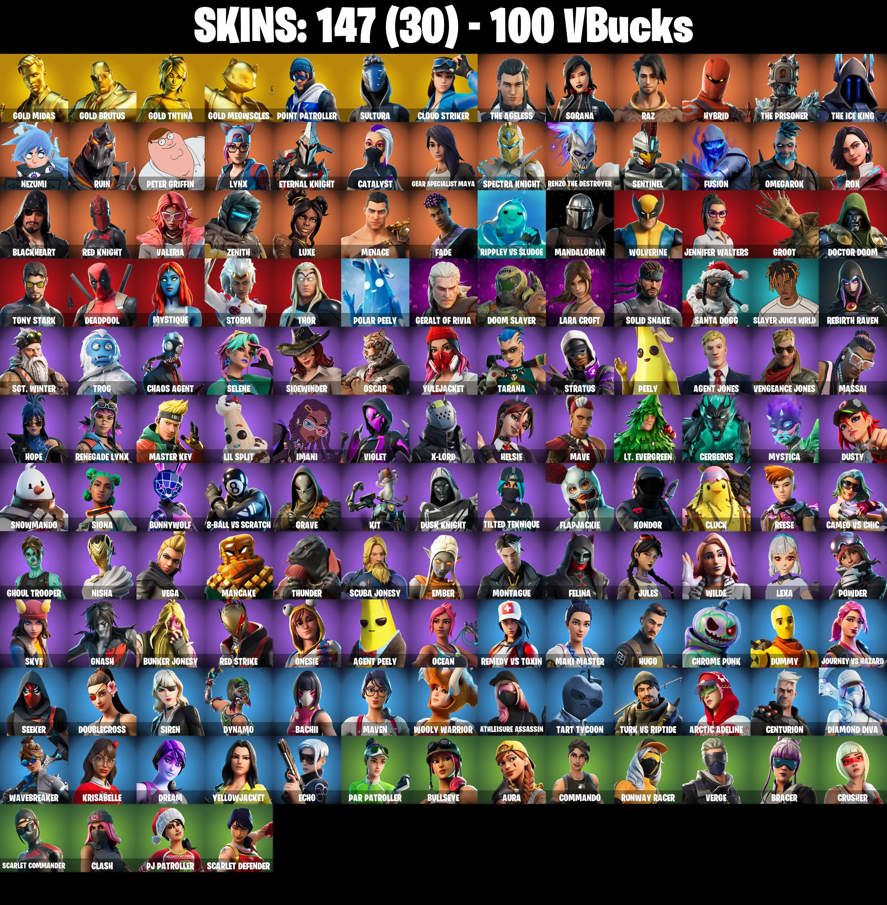 PC/PSN/XBOX ♨️147 skins ✨ Leviathan Axe ✨ Lara Croft ✨ Deadpool ✨ Gold Midas ✨ Gold Brutus ✨ Candy Axe ✨ Gold TNTina ✨ Gold Meowscles ✨ Reaper ✨ #B879