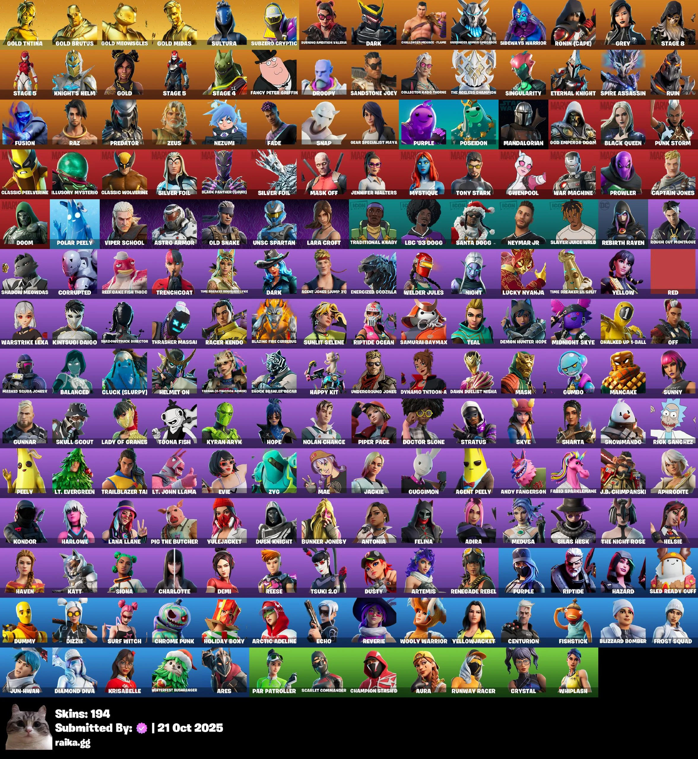 [PC/PSN/XBOX] 194 skins | Gold TNTina | Gold Brutus | Gold Meowscles | Gold Midas | Sultura | Subzero Cryptic | Burning Ambition Valeria | DARK | 750