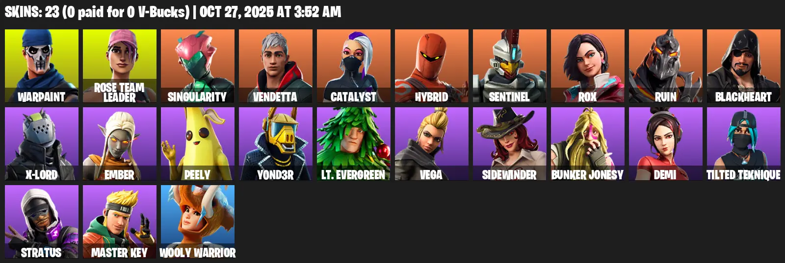 [PC/PSN/XBOX] | 23 skins | OG STW | Warpaint | Rose Team Leader | Singularity | Vendetta | Catalyst | Hybrid | Sentinel | Rox | Ruin | S4G