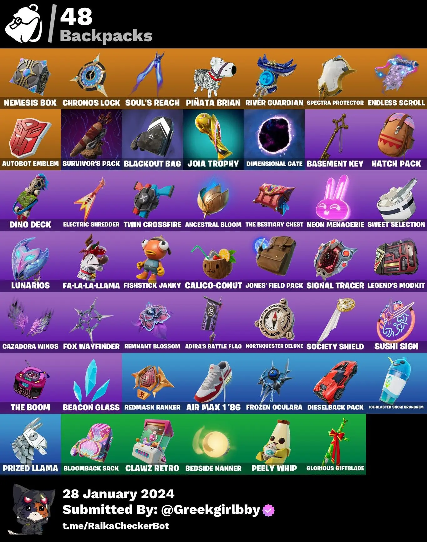 [PC/PSN/XBOX] 34 skins | Mizuki | Renzo the Destroyer | Era | Optimus Prime | Spire Assassin | Raz | Polar Peely | Lara Croft