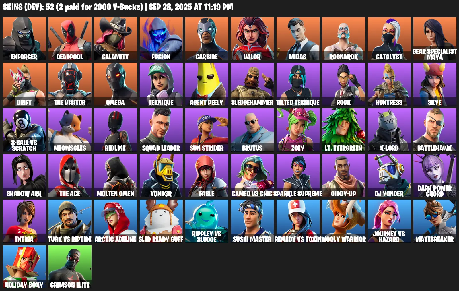 [PC/PSN/XBOX] | 52 skins | 550 V-bucks | Omega | Enforcer | Deadpool | Calamity | Fusion | Carbide | Valor | Midas | Ragnarok | Catalyst | S4G