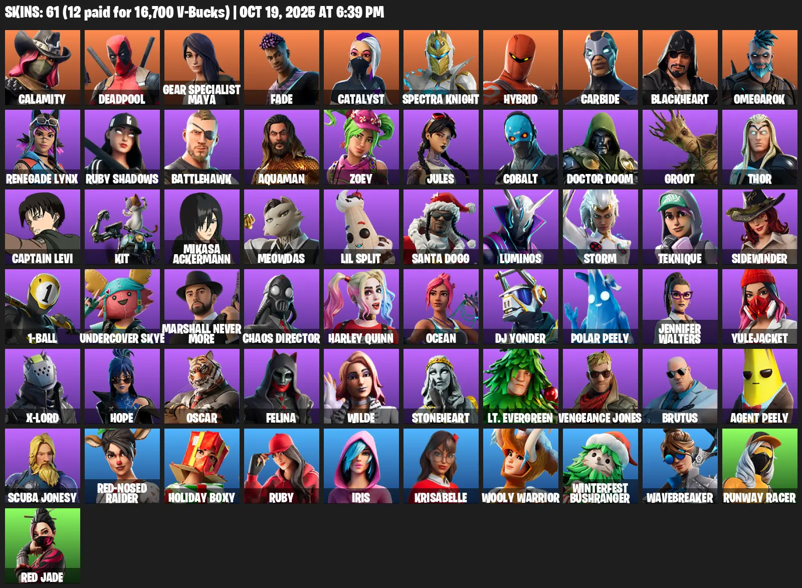 🍨 [PC/PSN/XBOX] 🌟 61 skins | Calamity , Deadpool , Gear Specialist Maya , Fade , Catalyst , Spectra Knight , Hybrid , Carbide , Blackheart | 💙 1600 VBUCKS | ✉️ Changeable Email Now