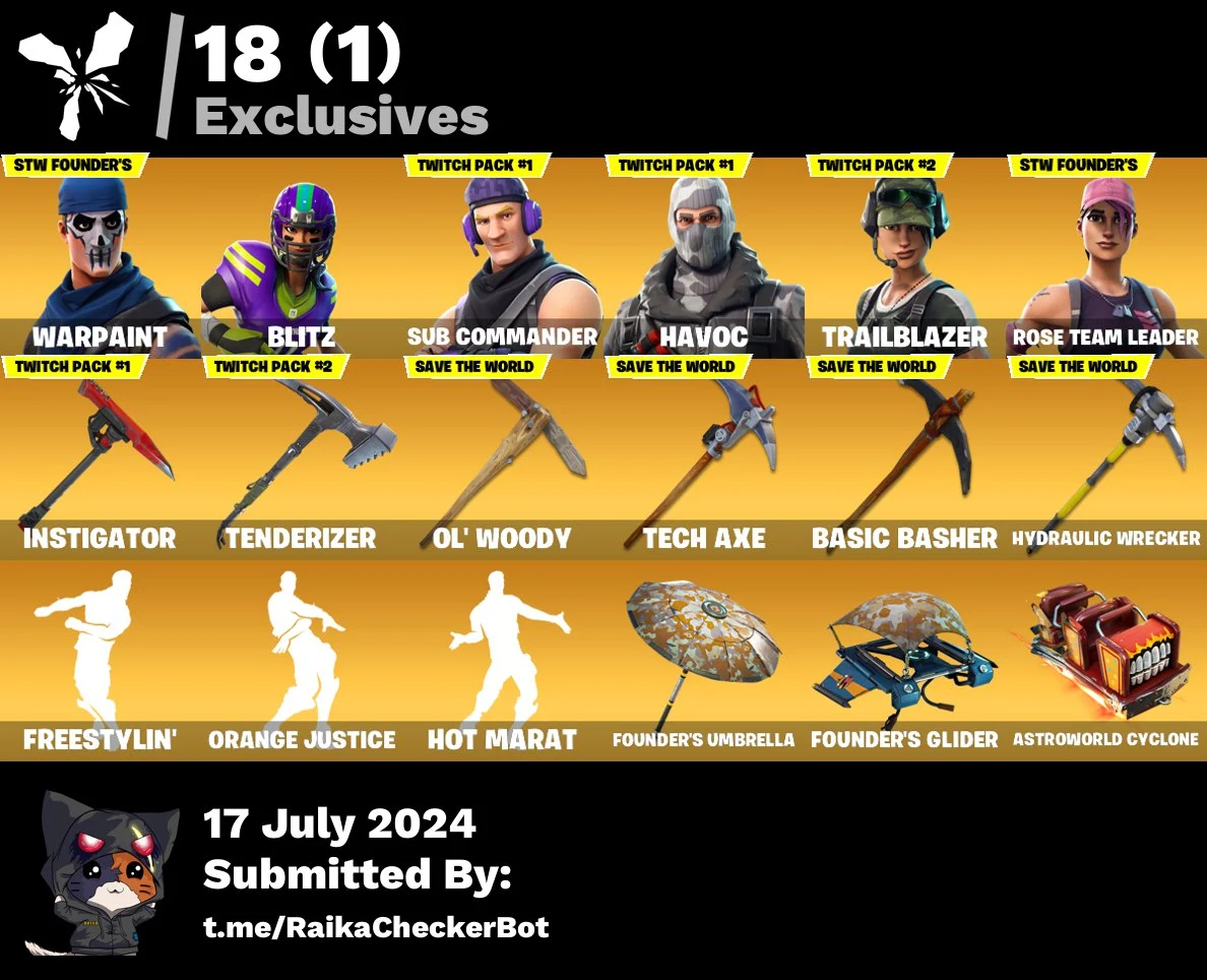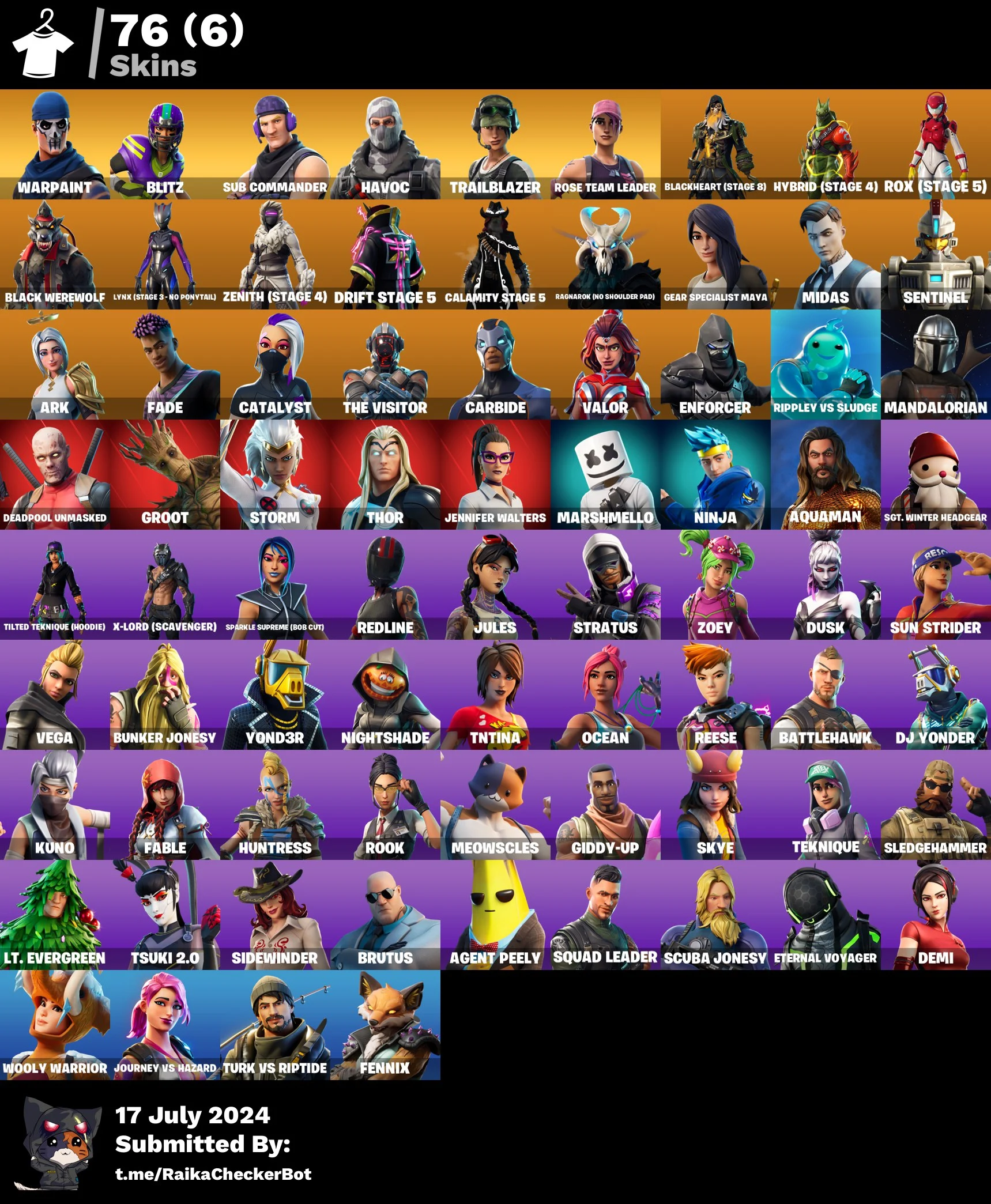 [PC/PSN/XBOX] 76 skins | OG STW | Blitz | Sub Commander | Havoc | Trailblazer | Blackheart (Stage 8) | Hybrid (Stage 4) | Rox (Stage 5) | 795 VB