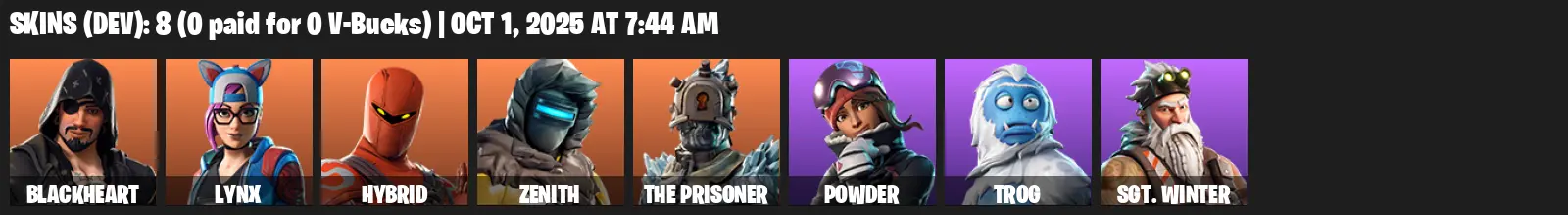 [PC/PSN/XBOX] | 8 skins | Blackheart | Lynx | Hybrid | Zenith | The Prisoner | Powder | Trog | Sgt. Winter | Swag Smasher | Dragon's Claw | S4G